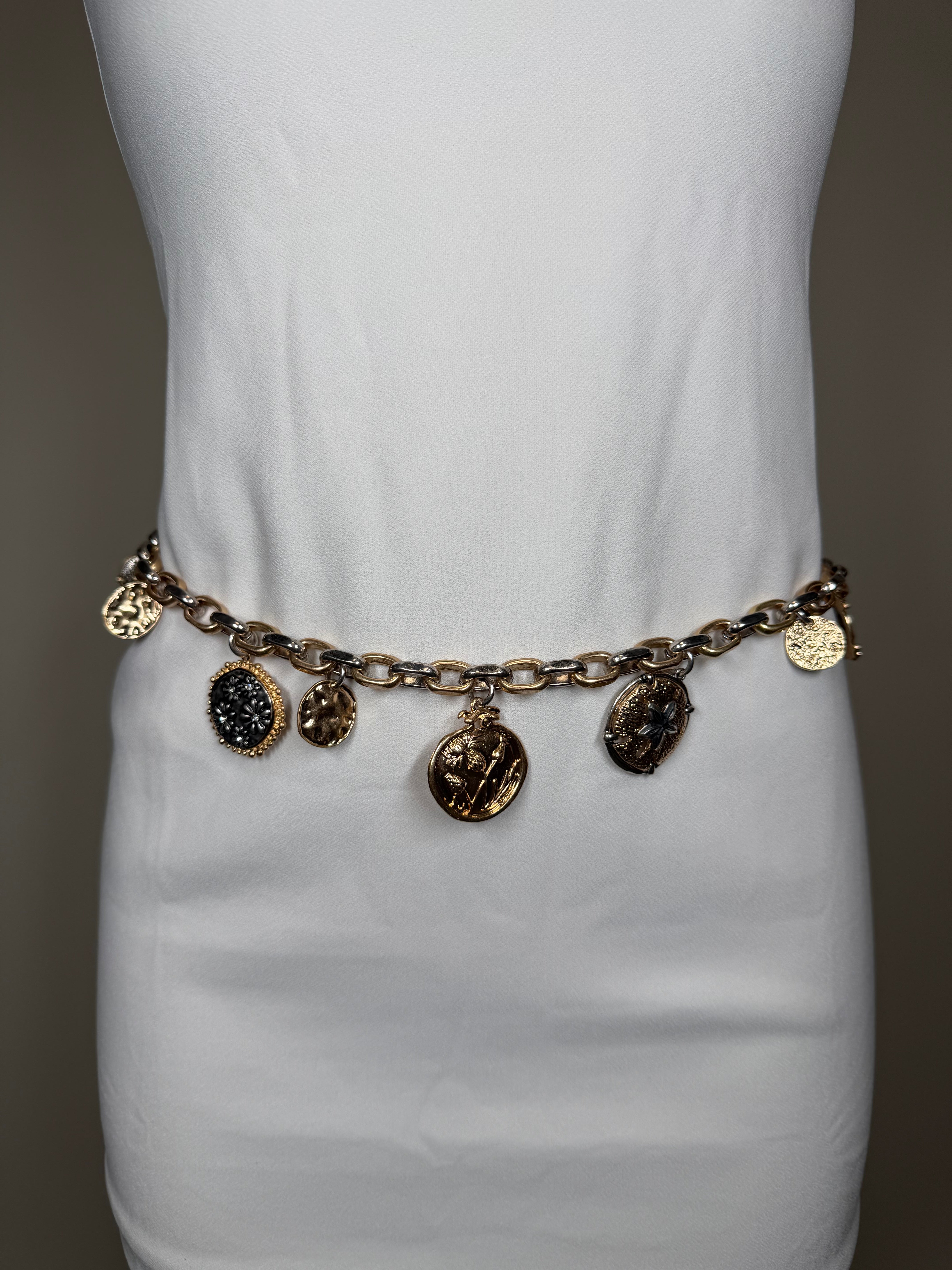 Add a radiant Western or casual flair to your wardrobe with the Tati Belt. This statement piece features alternating medallion with horse and flower with intricate engraved detailing, all in a polished silver finish that catches the light beautifully. Perfect for pairing with dresses, denim, or layered over blazers.