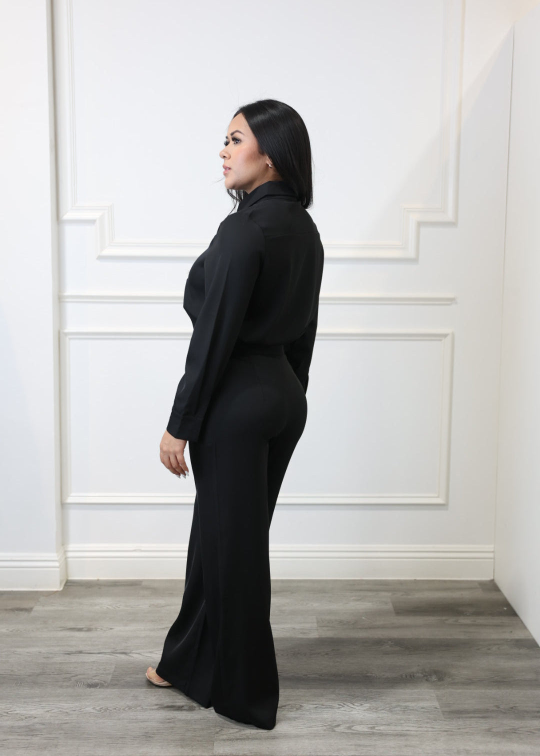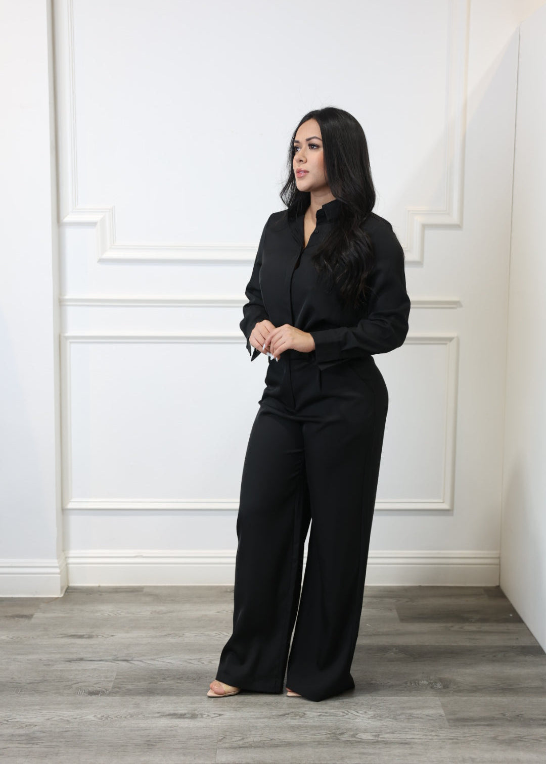 Isabel - Long-Sleeve Blouse & Straight-Leg Black Pants Set