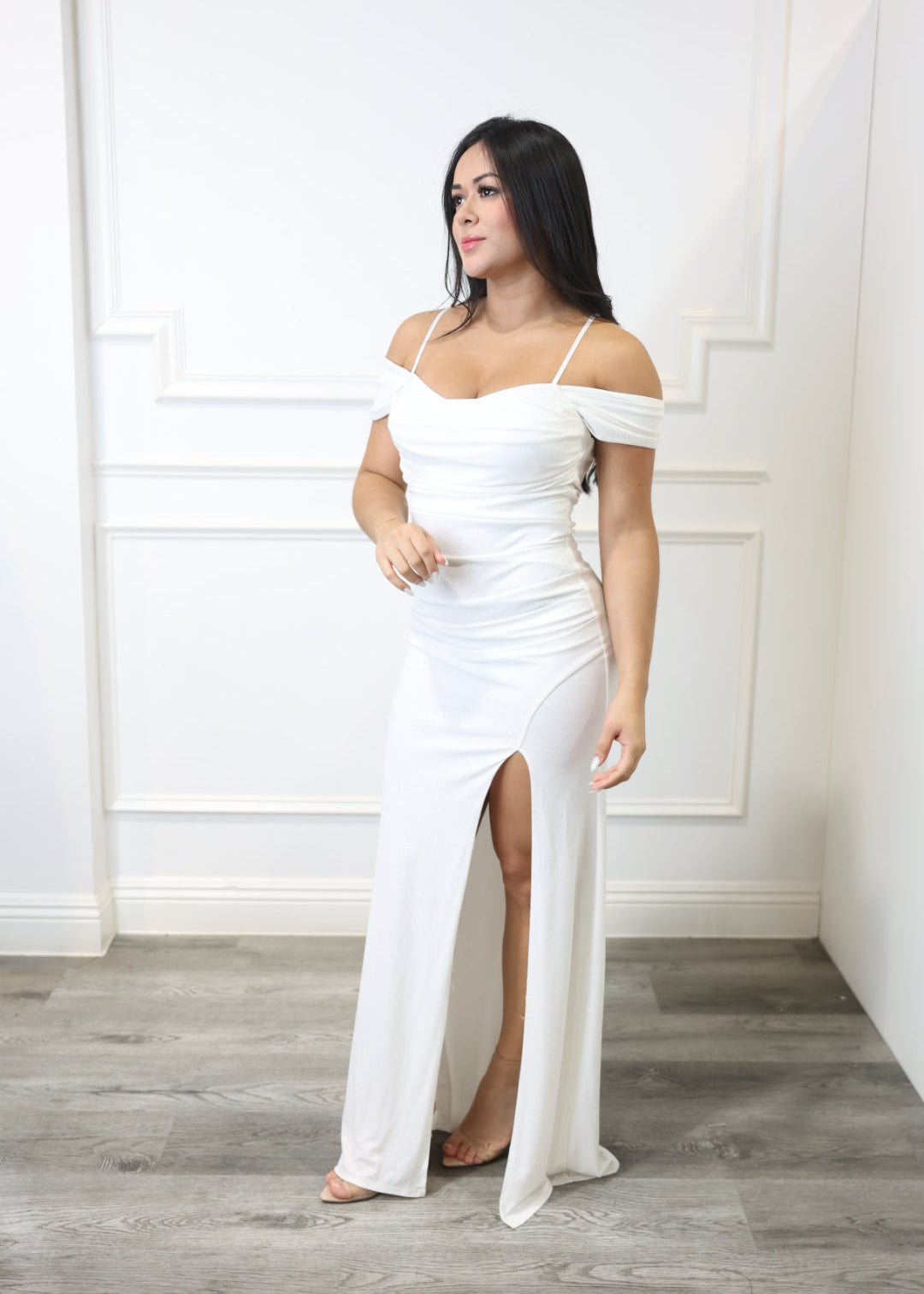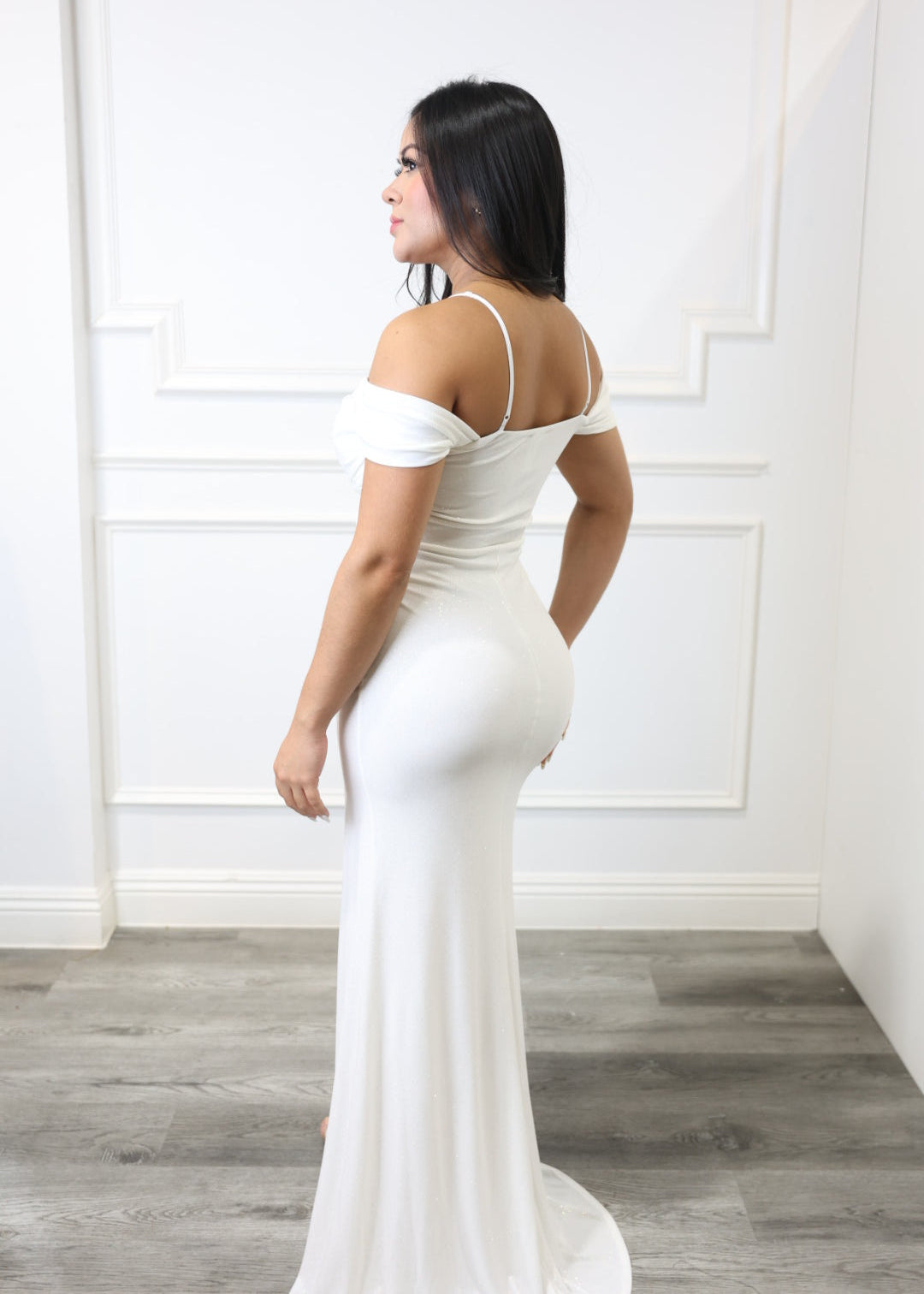 Marcella - White Sparkling Off-Shoulder Maxi Dress