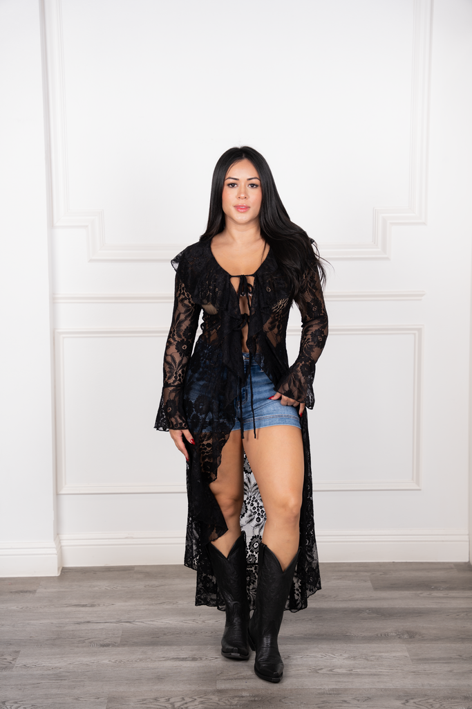 Macarena - Black Elegant Knee-Length Tailored Coat