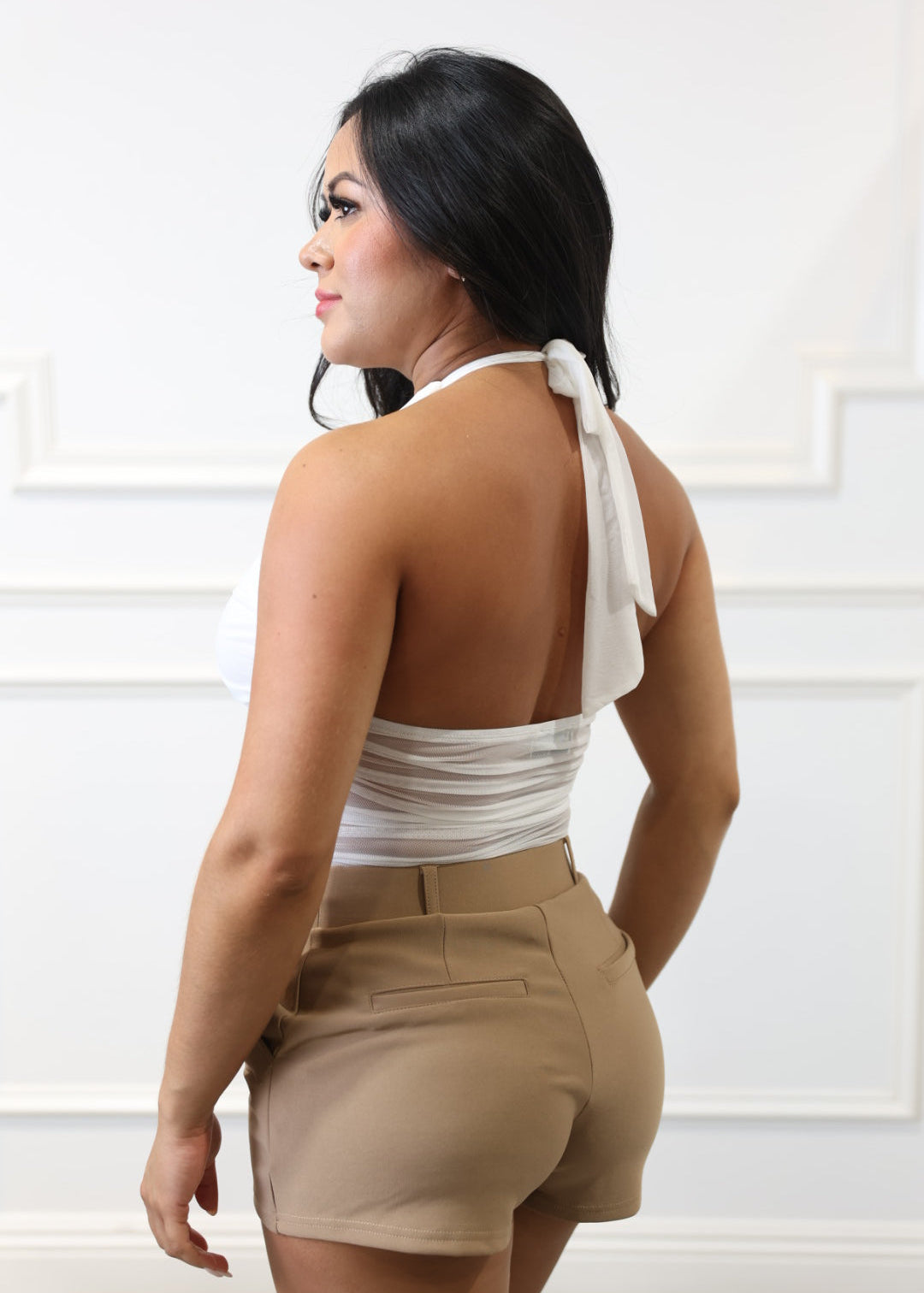 Melanie - White Halter Ruched Bodysuit
