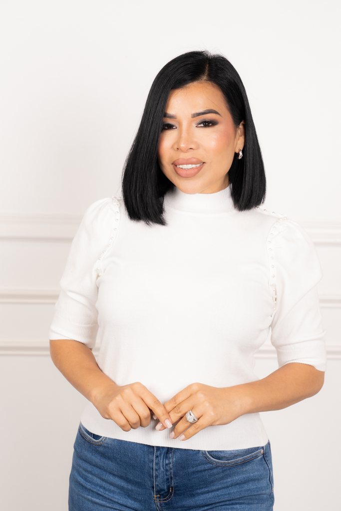 Regina - Burgundy Long-Sleeve Knit Blouse with Side Buttons