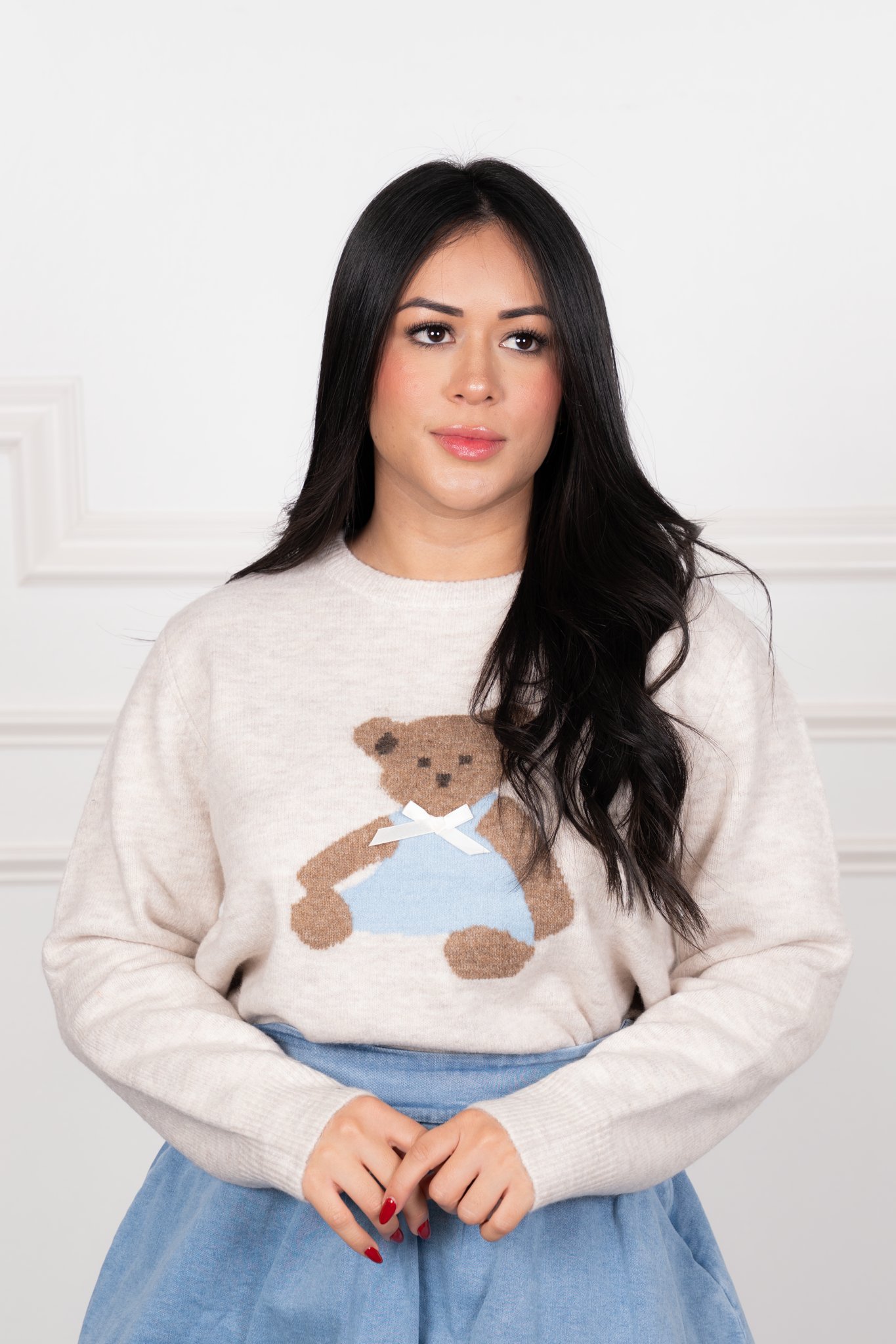 Oversized Sweater – Soft Bear Embroidery & Cozy Long Fit