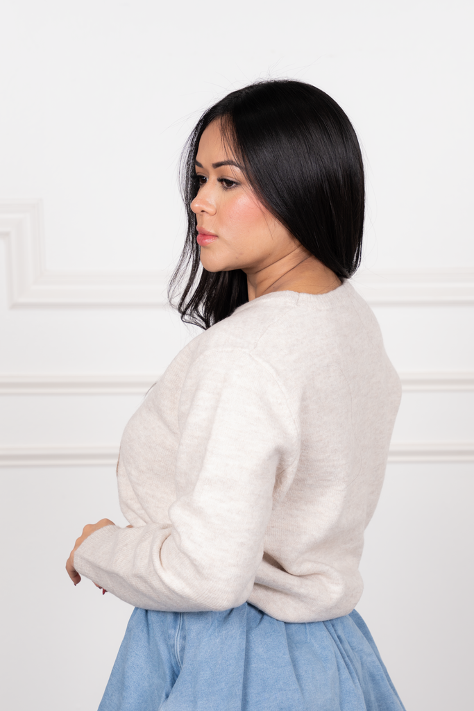 Samantha - Beige Oversized Bear Embroidered Sweater