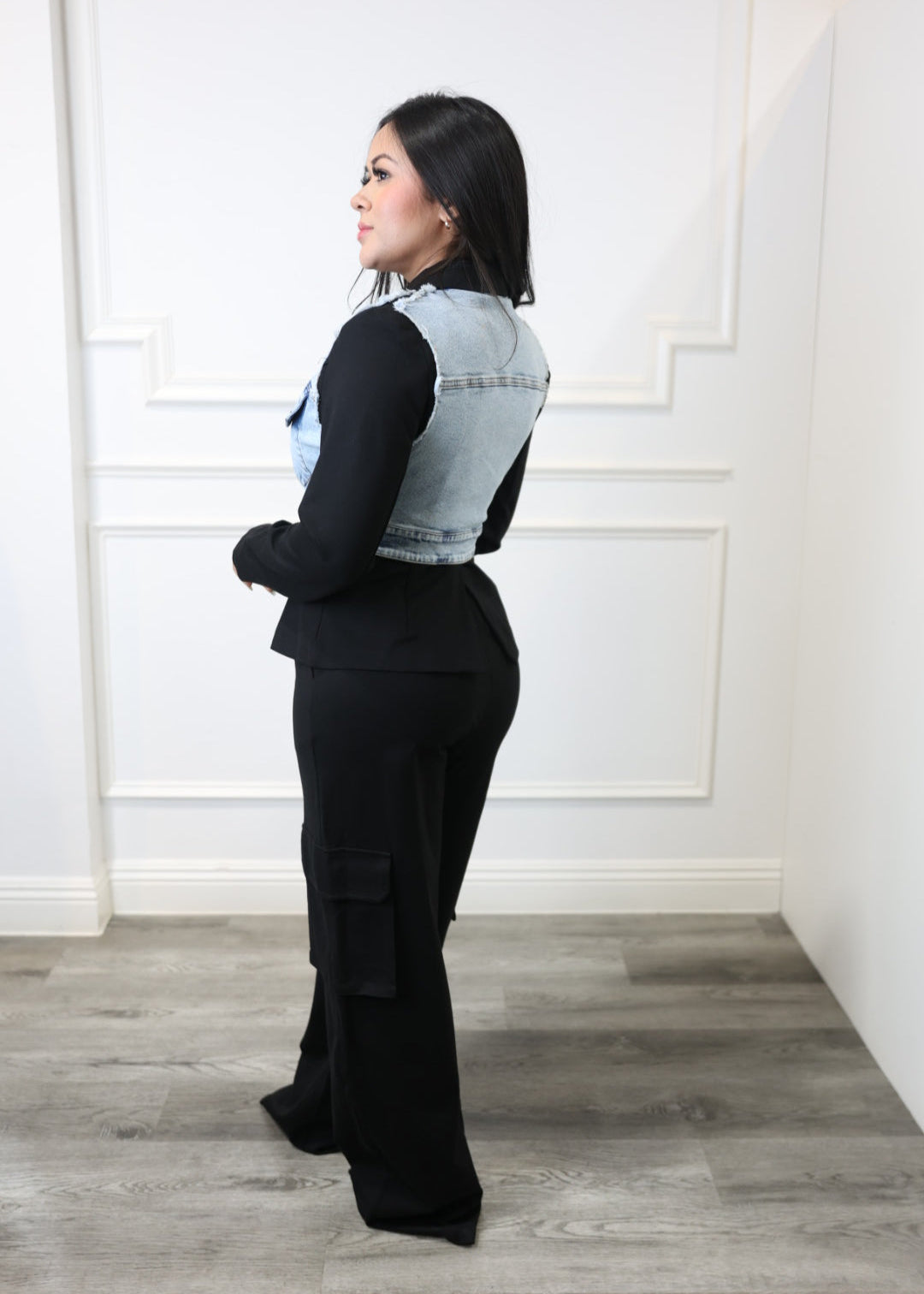 Silvia - Black Urban Knit Denim-Inspired Set