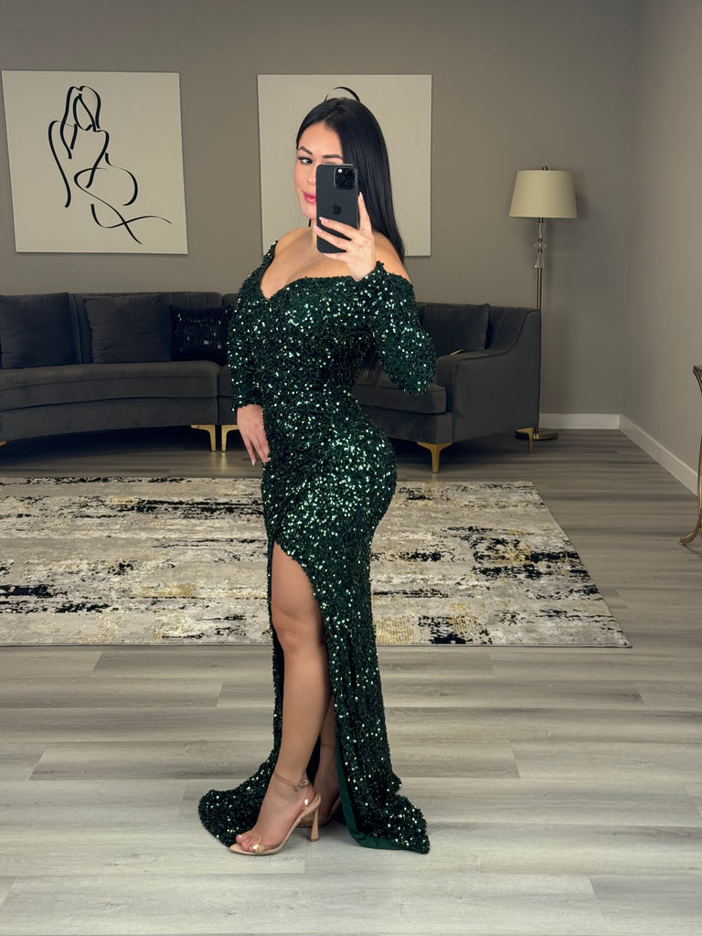 Aria - Black Long-Sleeve Mesh Rhinestone Maxi Dress