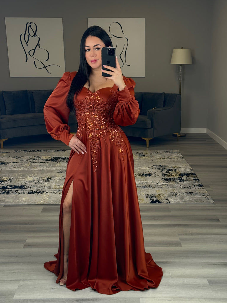 Danika - Rhinestone Mesh Corset Red Maxi Dress