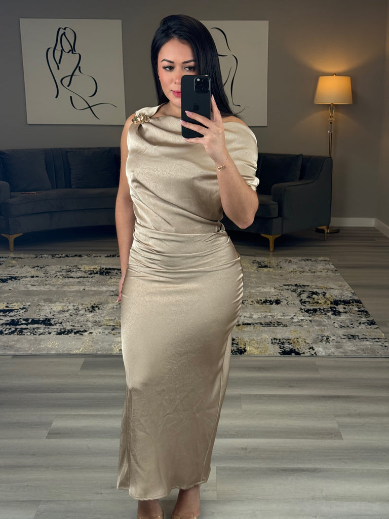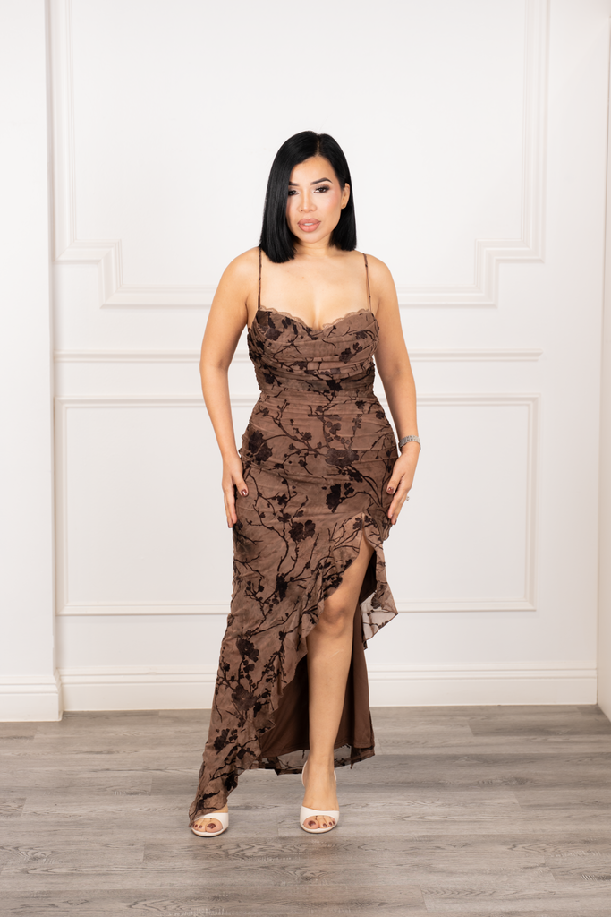 Danika - Rhinestone Mesh Corset Nude Maxi Dress
