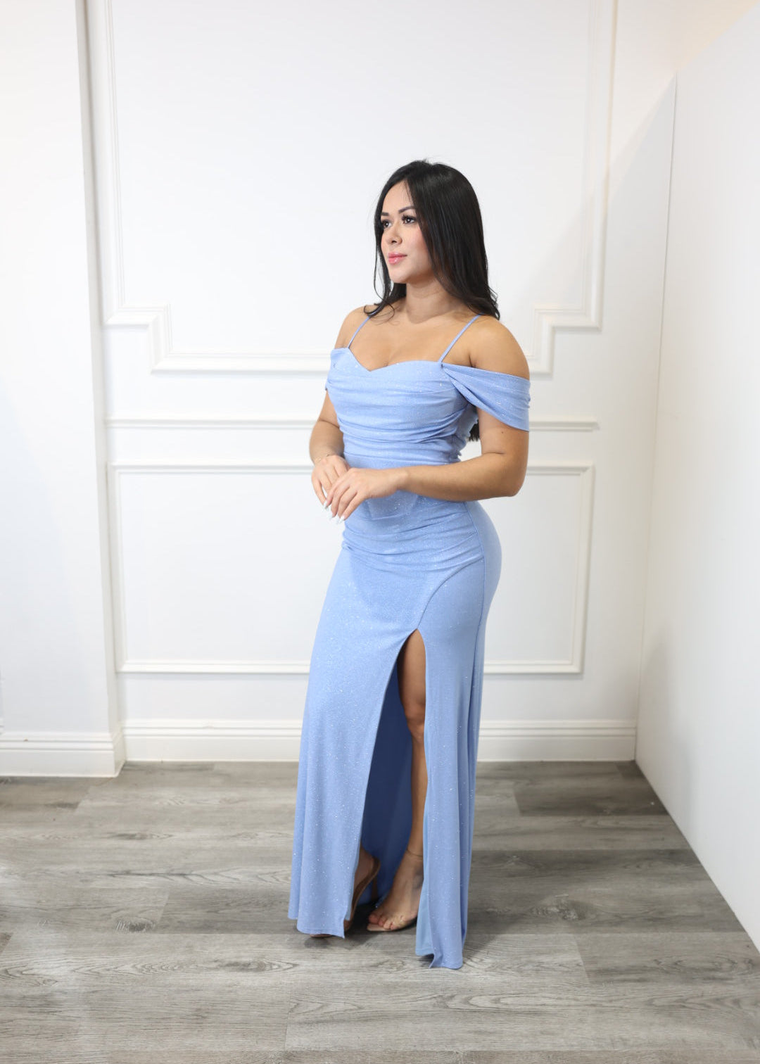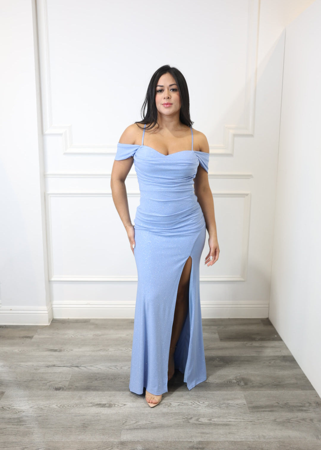 Marcella - Light Blue Sparkling Off-Shoulder Maxi Dress