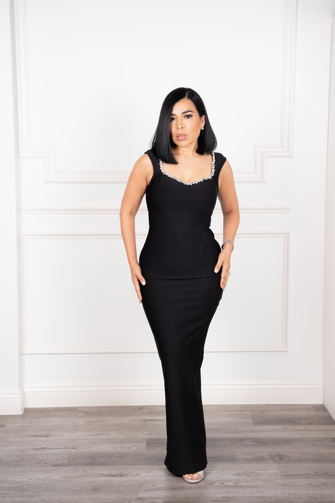 Amaya - Black Sparkling Cross-Back Mermaid Dress