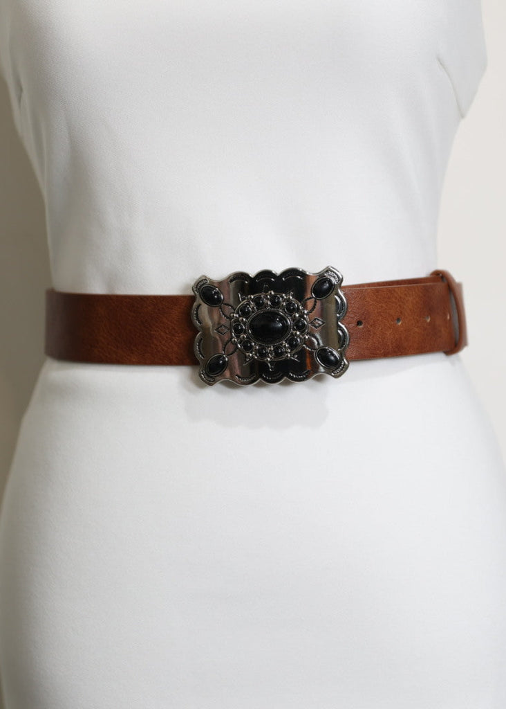 Ani - Brown Leather & Black Stone Detail