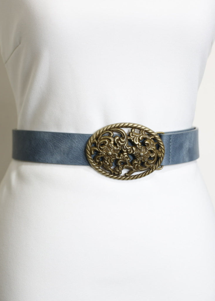 Belén – Blue Belt with Horse Head Silver Buckle