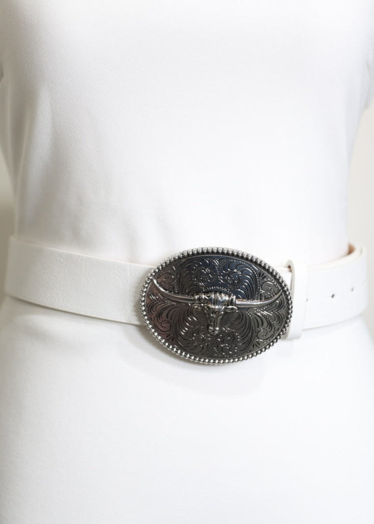Ariana - White Leather & Longhorn Silver Detail