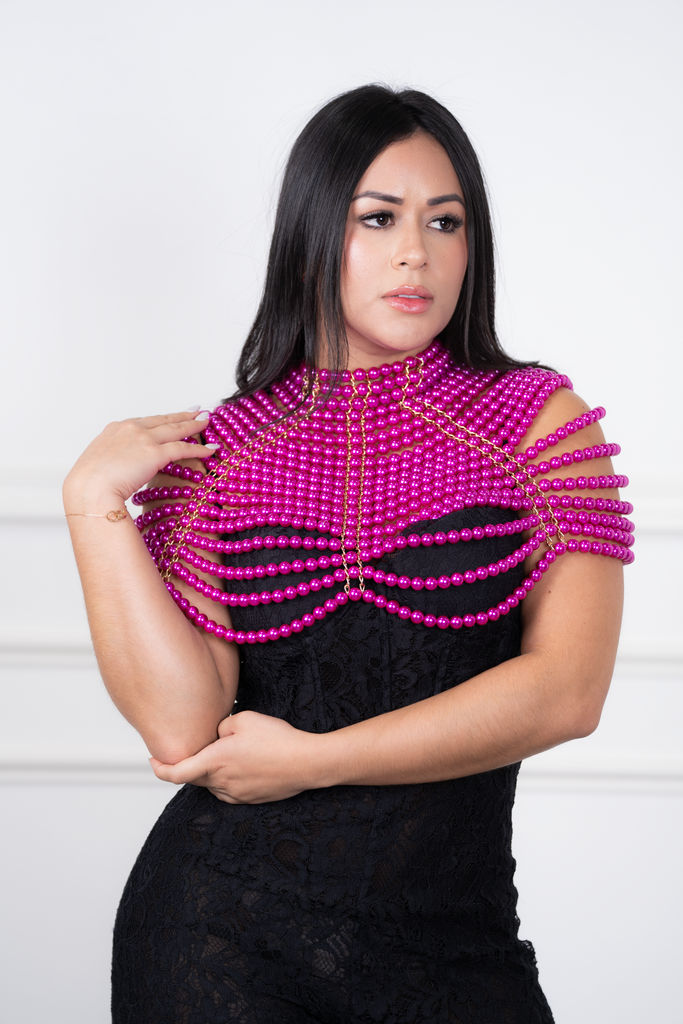 Athena - Fuchsia Beaded Shoulder Necklace