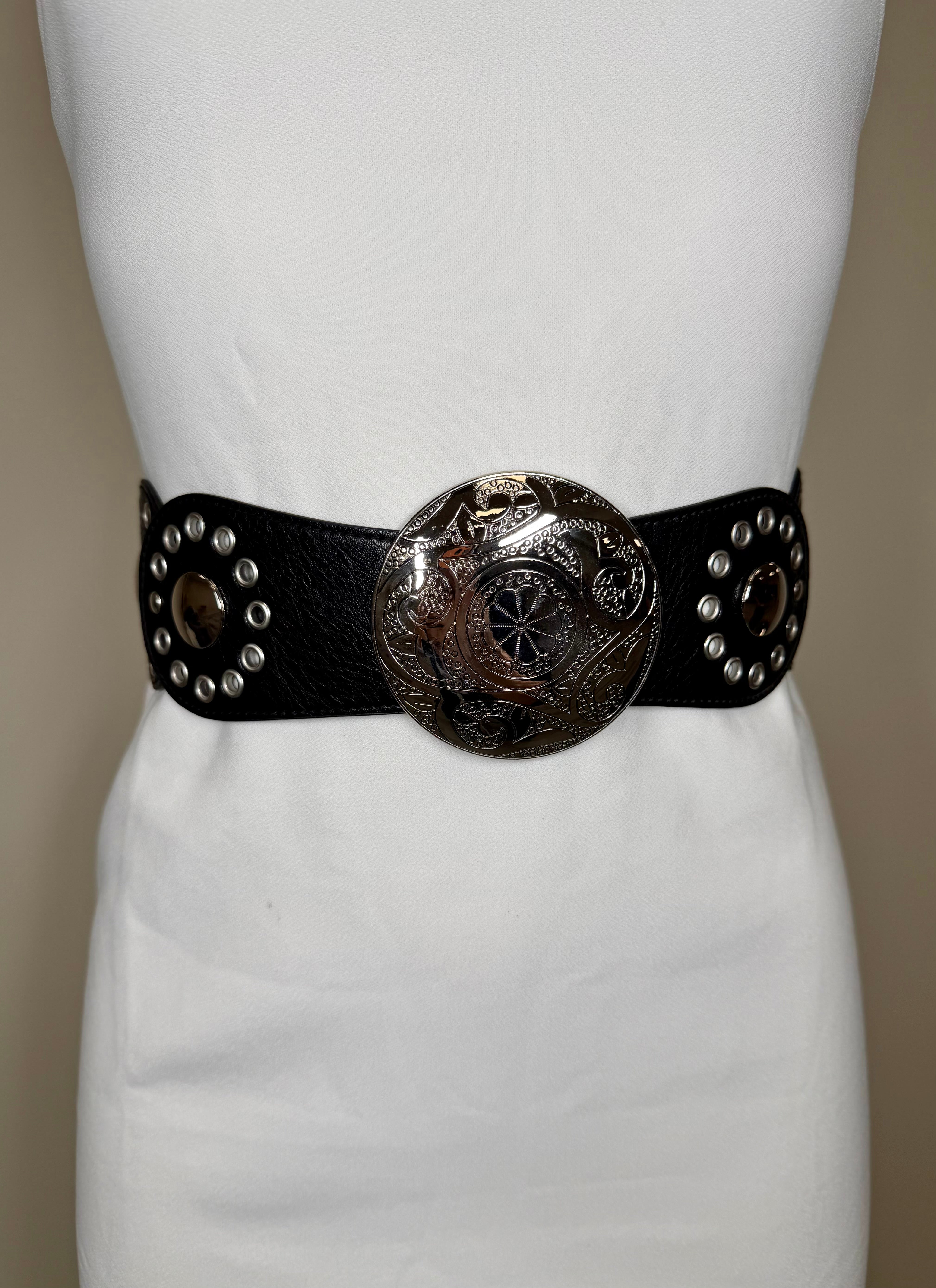Stretch&Silver Circle Statement Black Belt