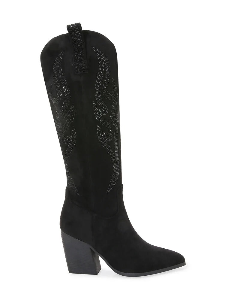 Black Suede Rhinestone Cowboy Boots -Shine Like a Star