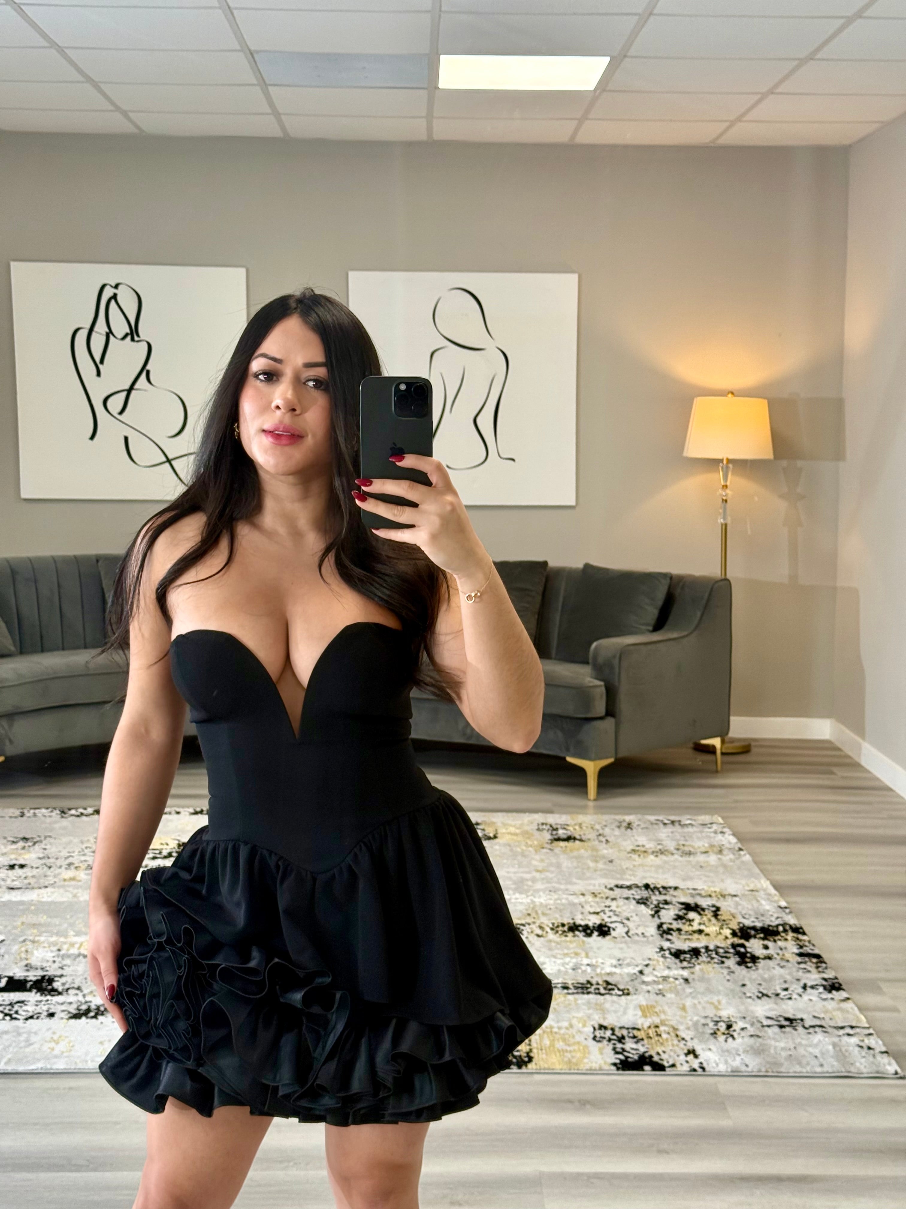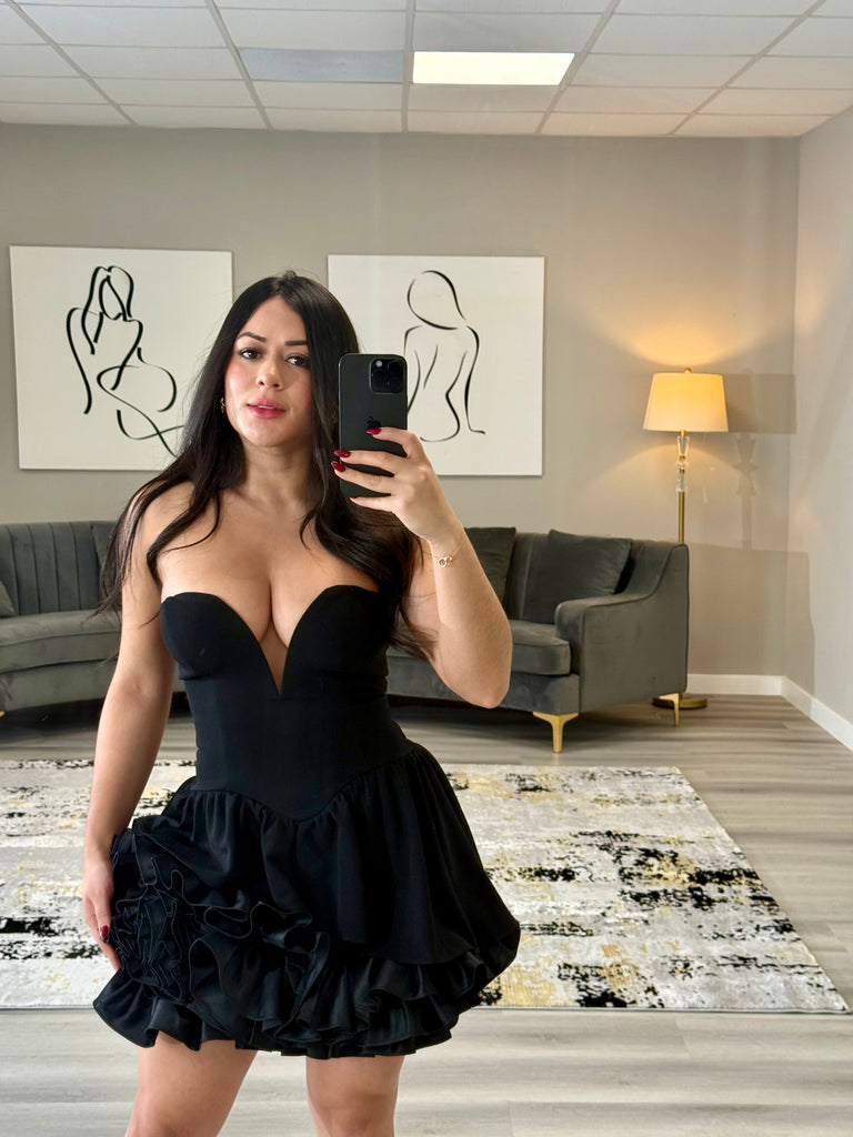Amelina-Black Layer Of Ruffles Mini Dress
