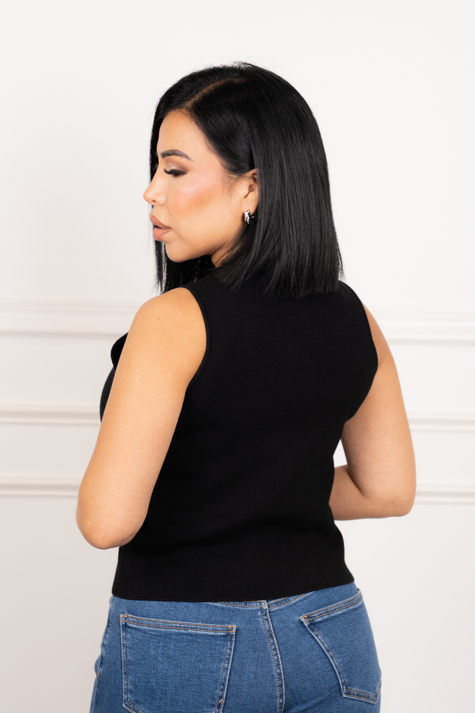Vest-Style Knit Blouse – Silver Button Detail & Chic Fit