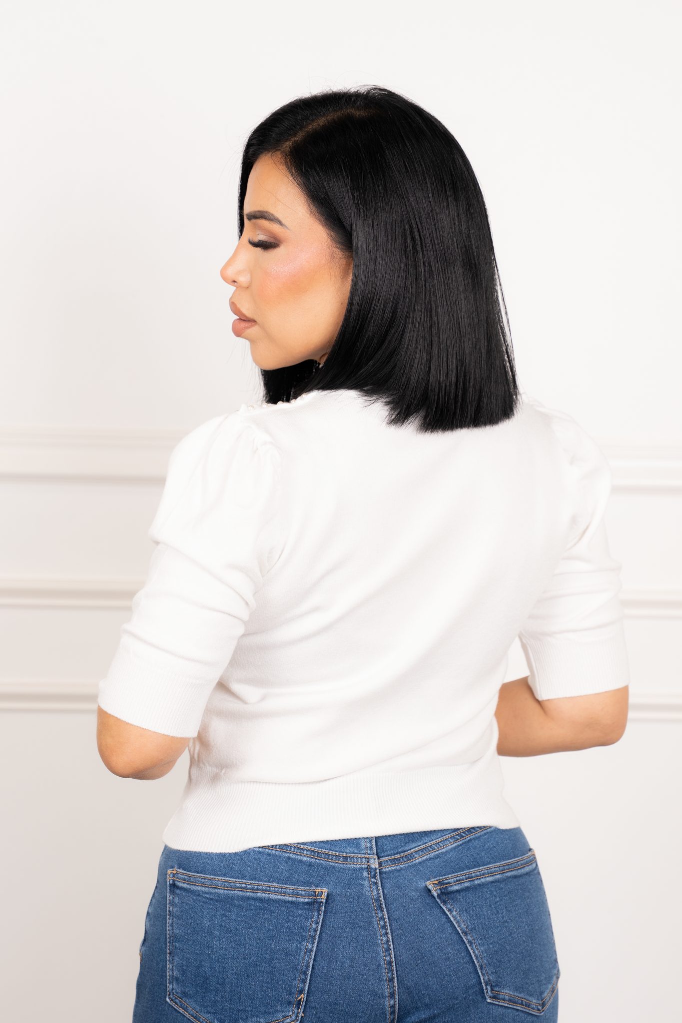Elena - White Sleeve Sweater Blouse