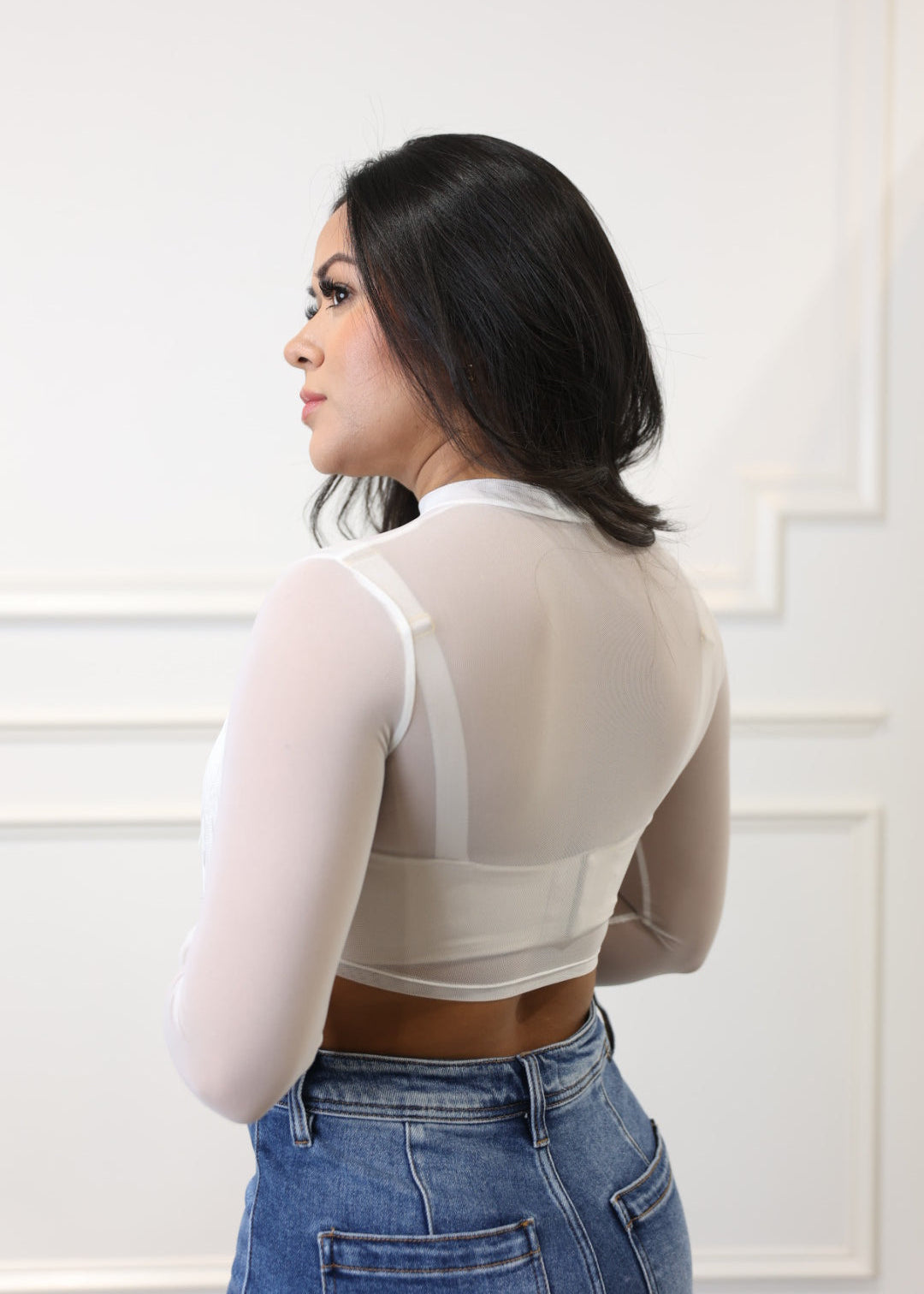Sheer Long-Sleeve Crop Top with Fringe Detail – Edgy & Playful