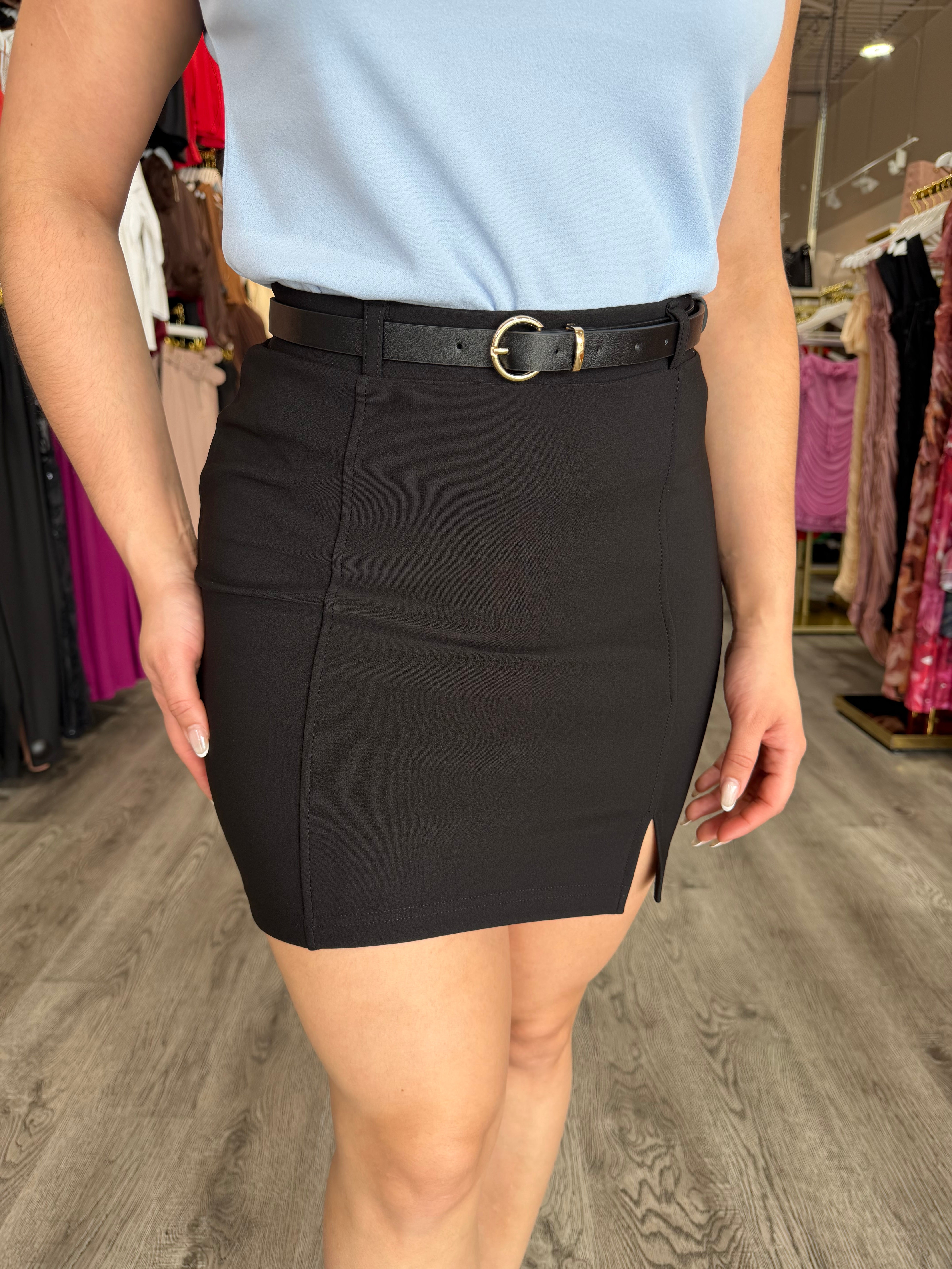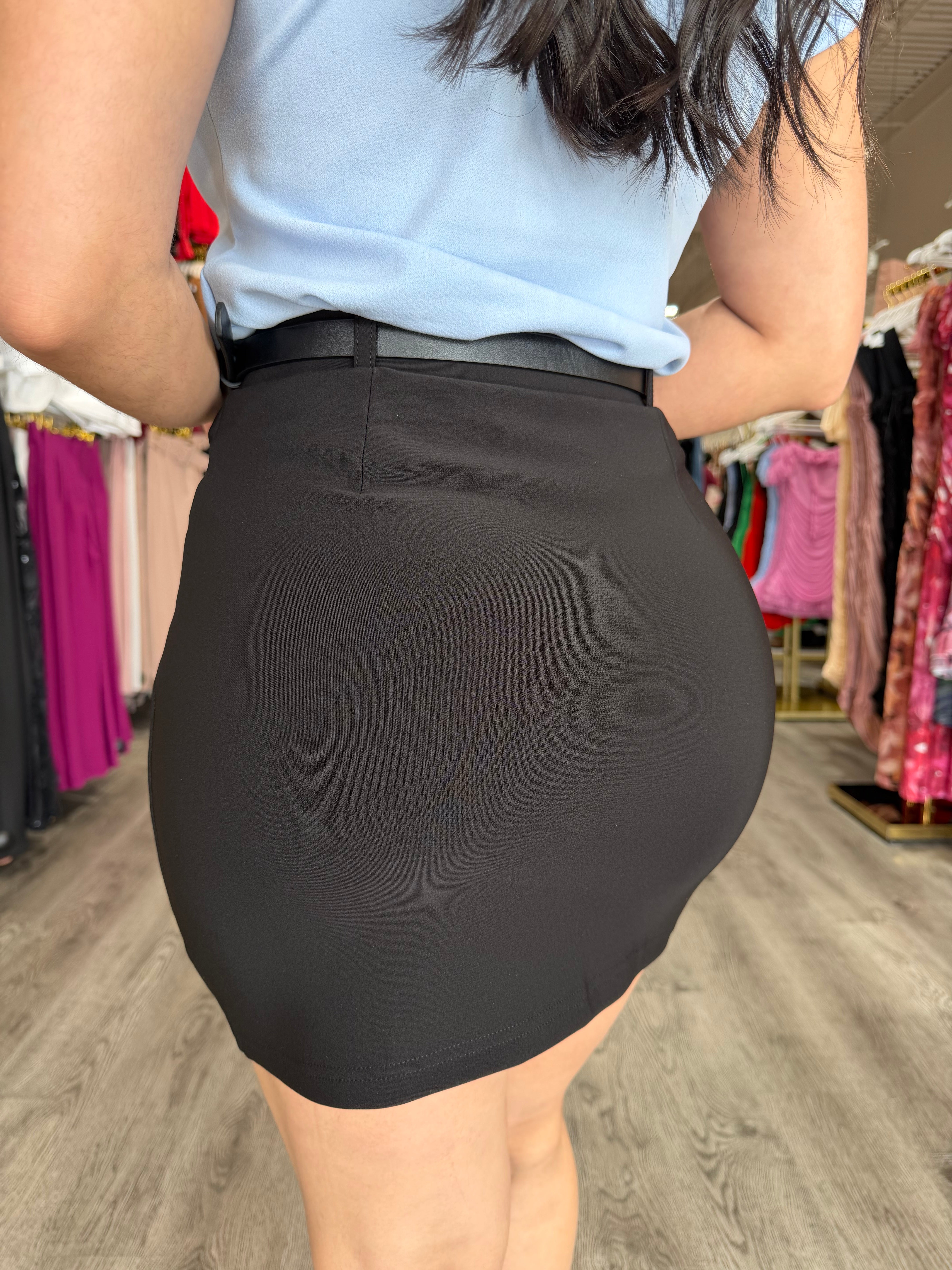 Nara- Black Scuba Side Slit Belted Skort - Black / S is backordered and will ship as soon as it is back in stock.