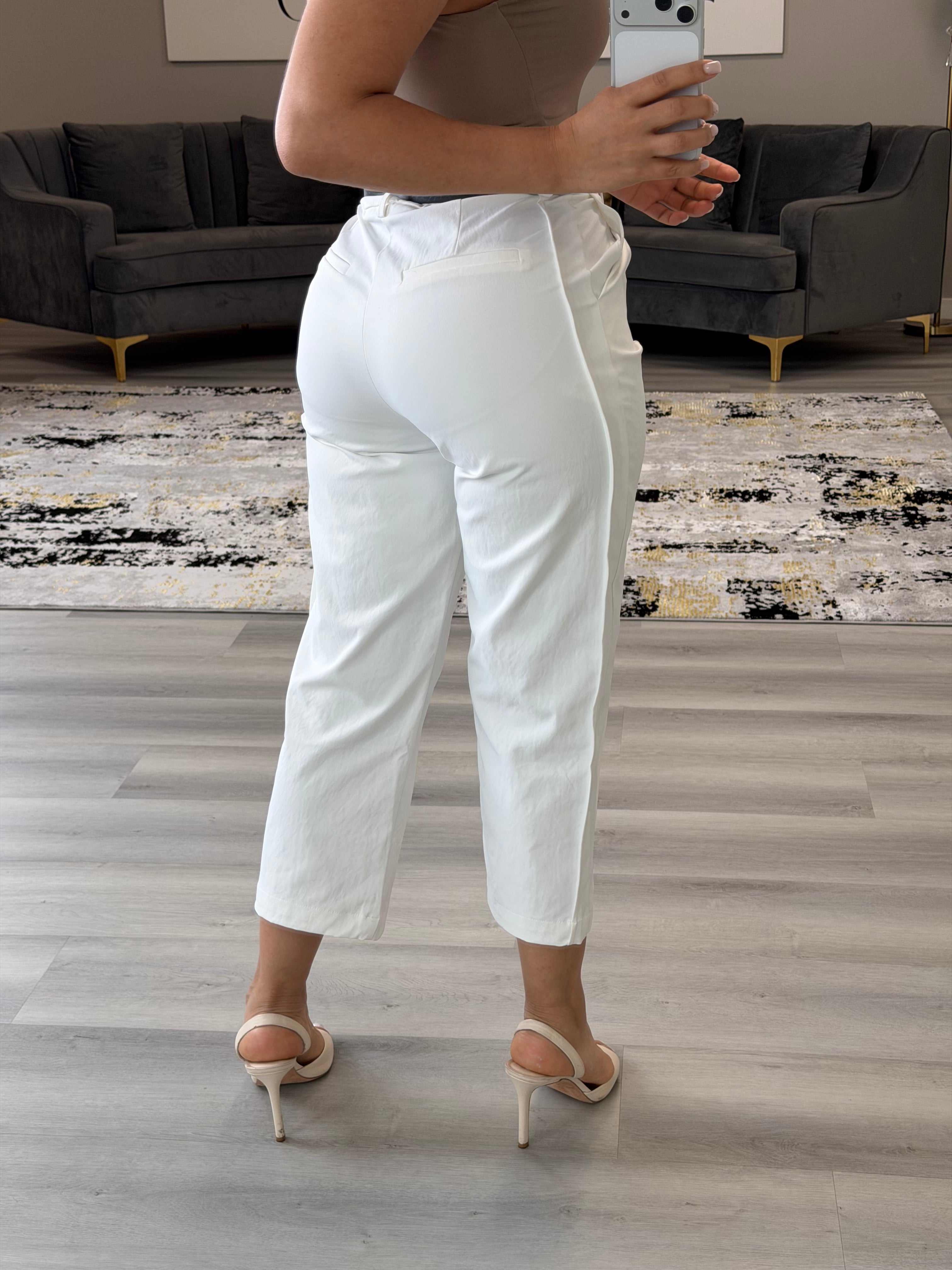 Pants – Wide-Leg Formal Capri with Belt, Pleated Front & Side Pockets