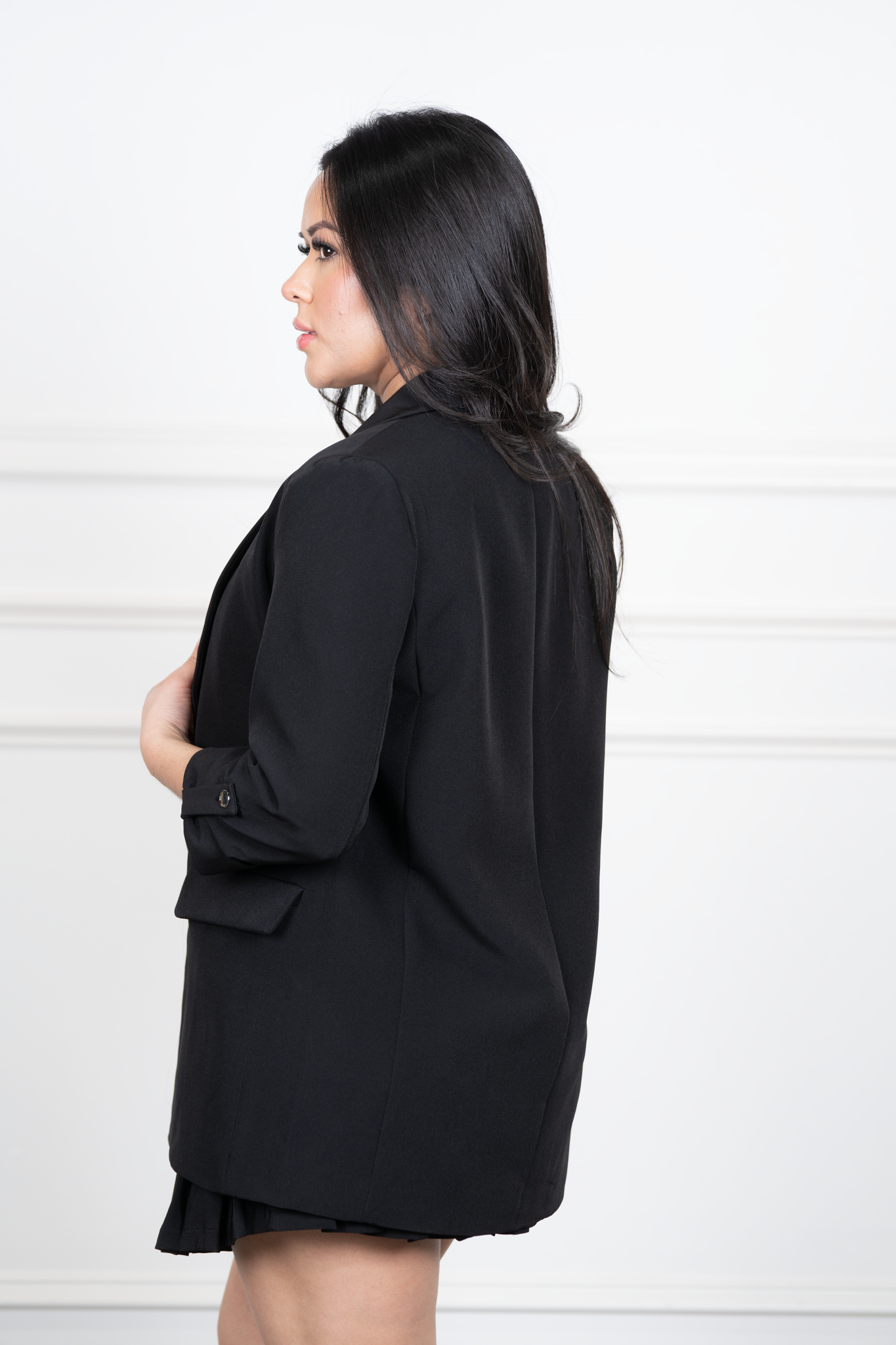 Command attention with the Lova Set, a sophisticated two-piece ensemble designed for versatility and style. The oversized tailored blazer features side pockets and front button closure for a polished finish. Completing the look, the mini pleated skirt, balancing structure with chic femininity. Perfect to wear together or mix and match for endless styling options.