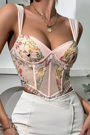 Tina-Floral Embroidered Sheer Corset Top-romantic,chic - Floral / S is backordered and will ship as soon as it is back in stock.
