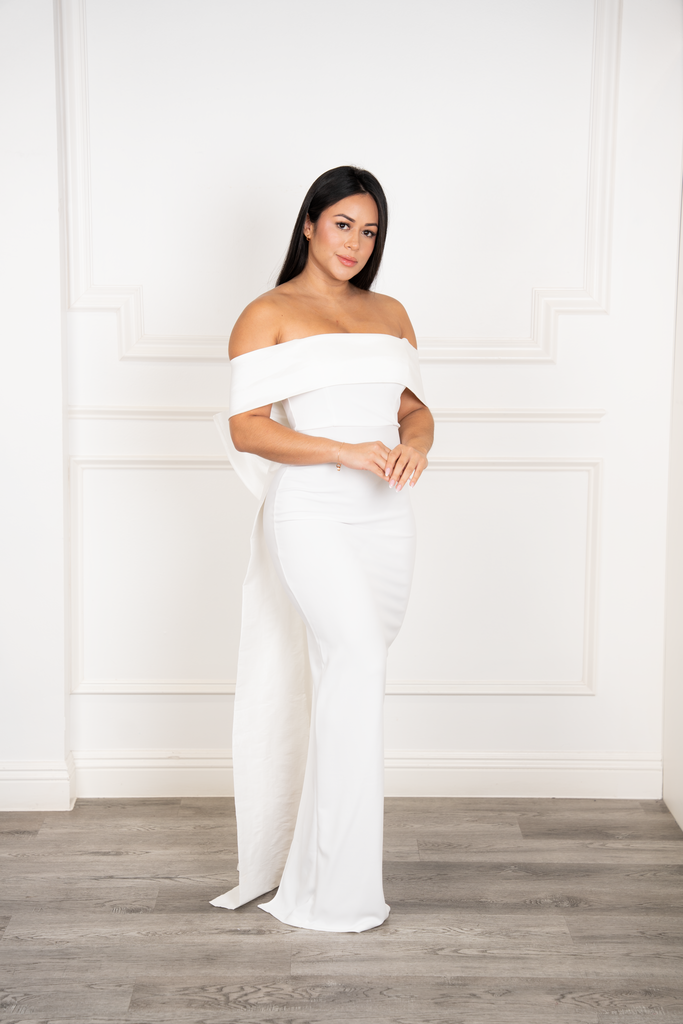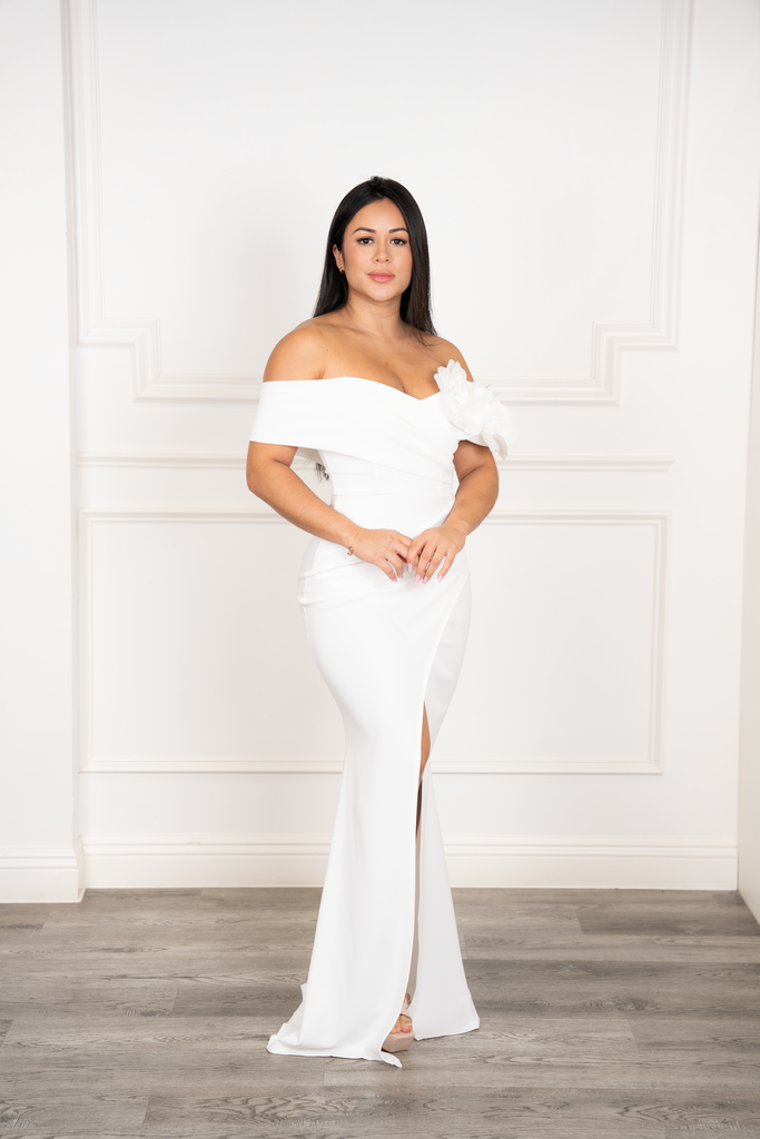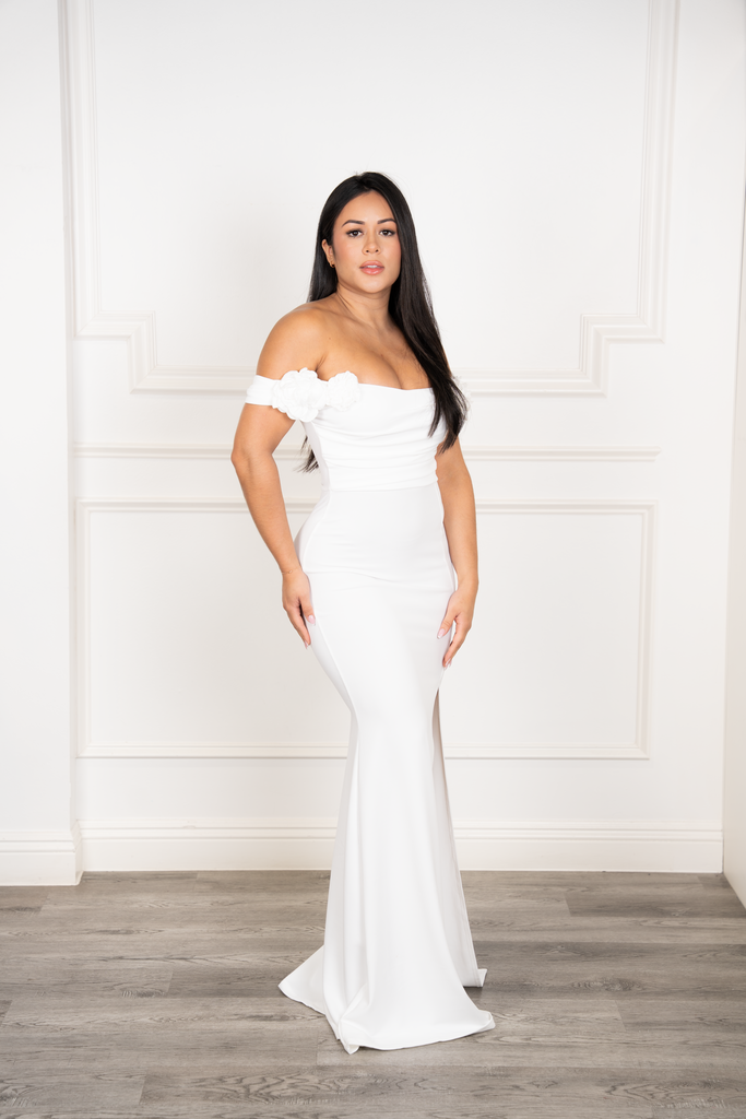 Ivanna - White Off-Shoulder 3D Flower Dress