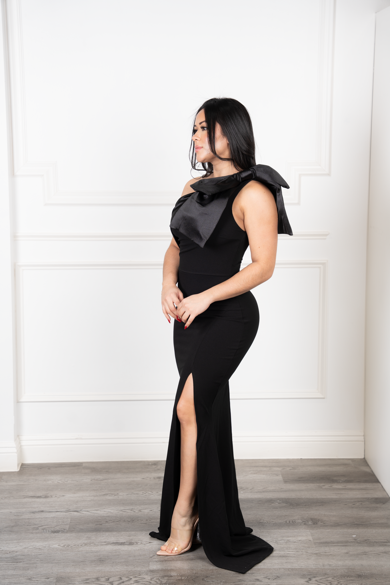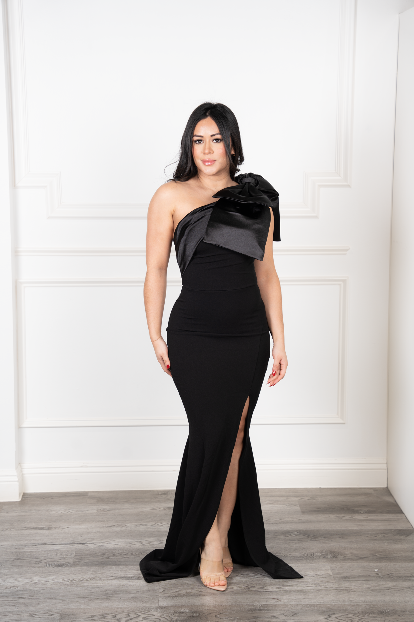 Gala Dress - Asymmetrical design with a striking bow strap on the shoulder
