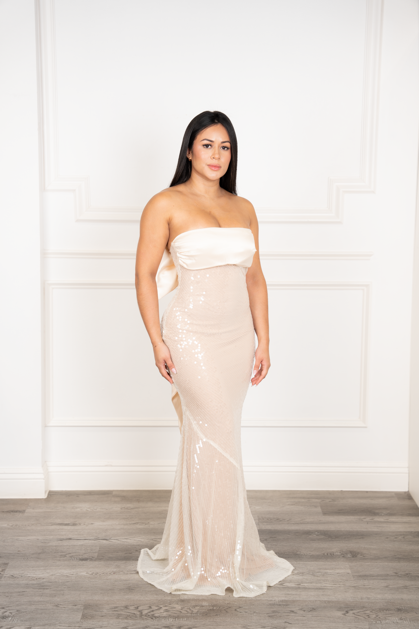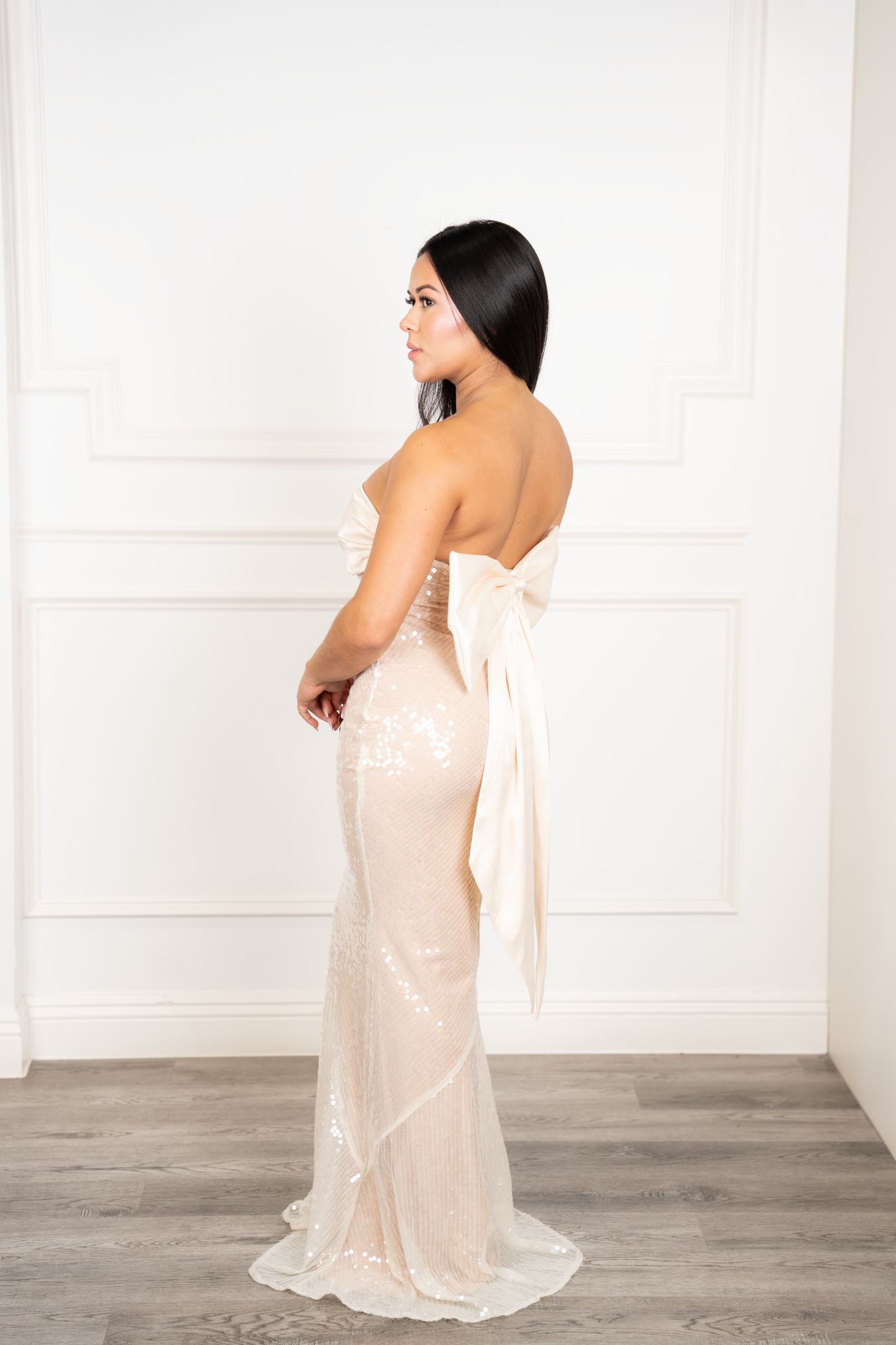 Strapless Sequin Mermaid Dress - Dramatic Back Bow