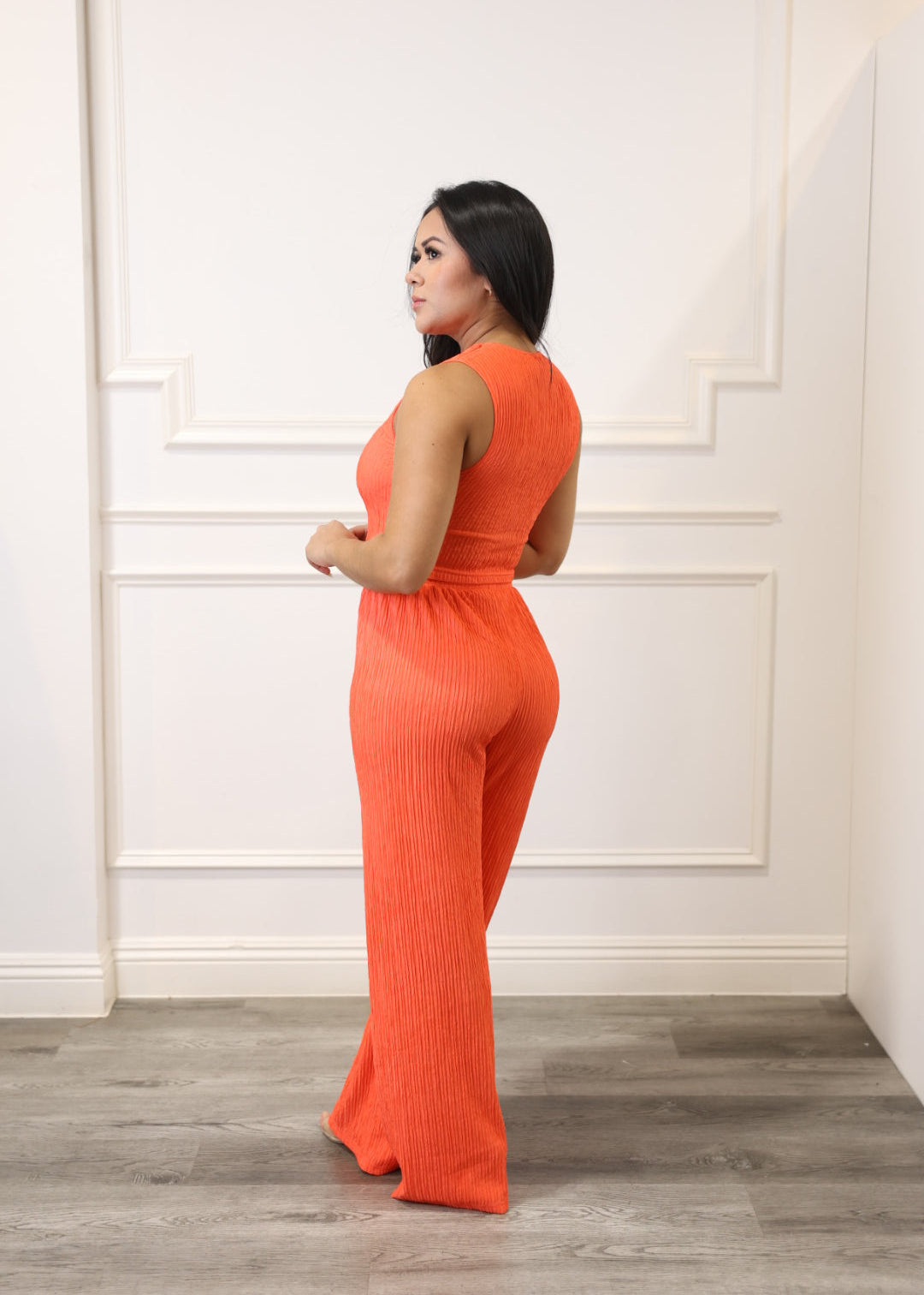 Khris - Pleated T-shirt & Wide-Legged Orange Pants Set