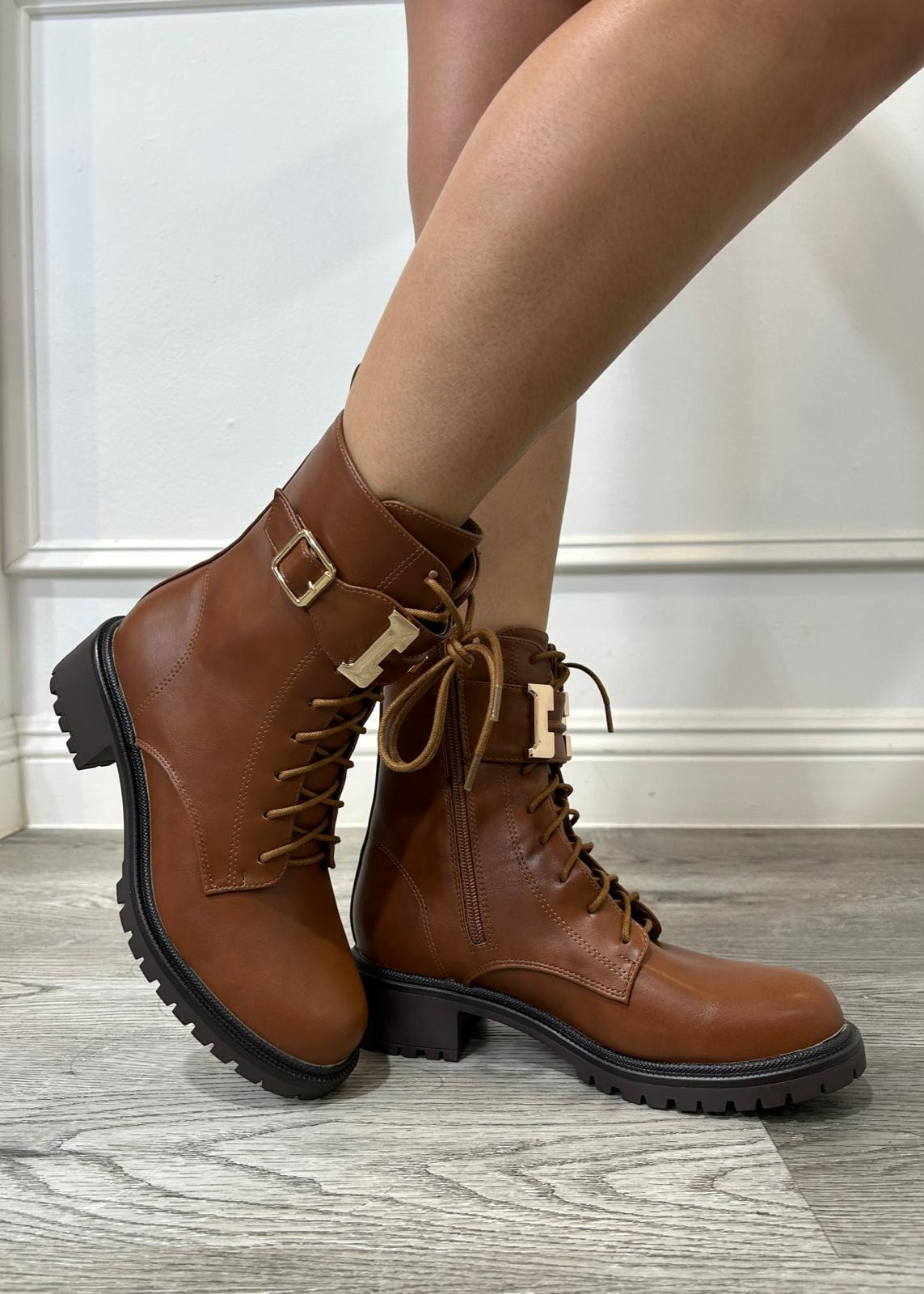 Combat Boots are your go-to for an effortlessly edgy look. Designed with gold hardware, lace-up front, and inner zipper for ease, they’re the perfect mix of function and fashion. Whether you're dressing up jeans or adding contrast to a feminine outfit, they’ll never let you down.
