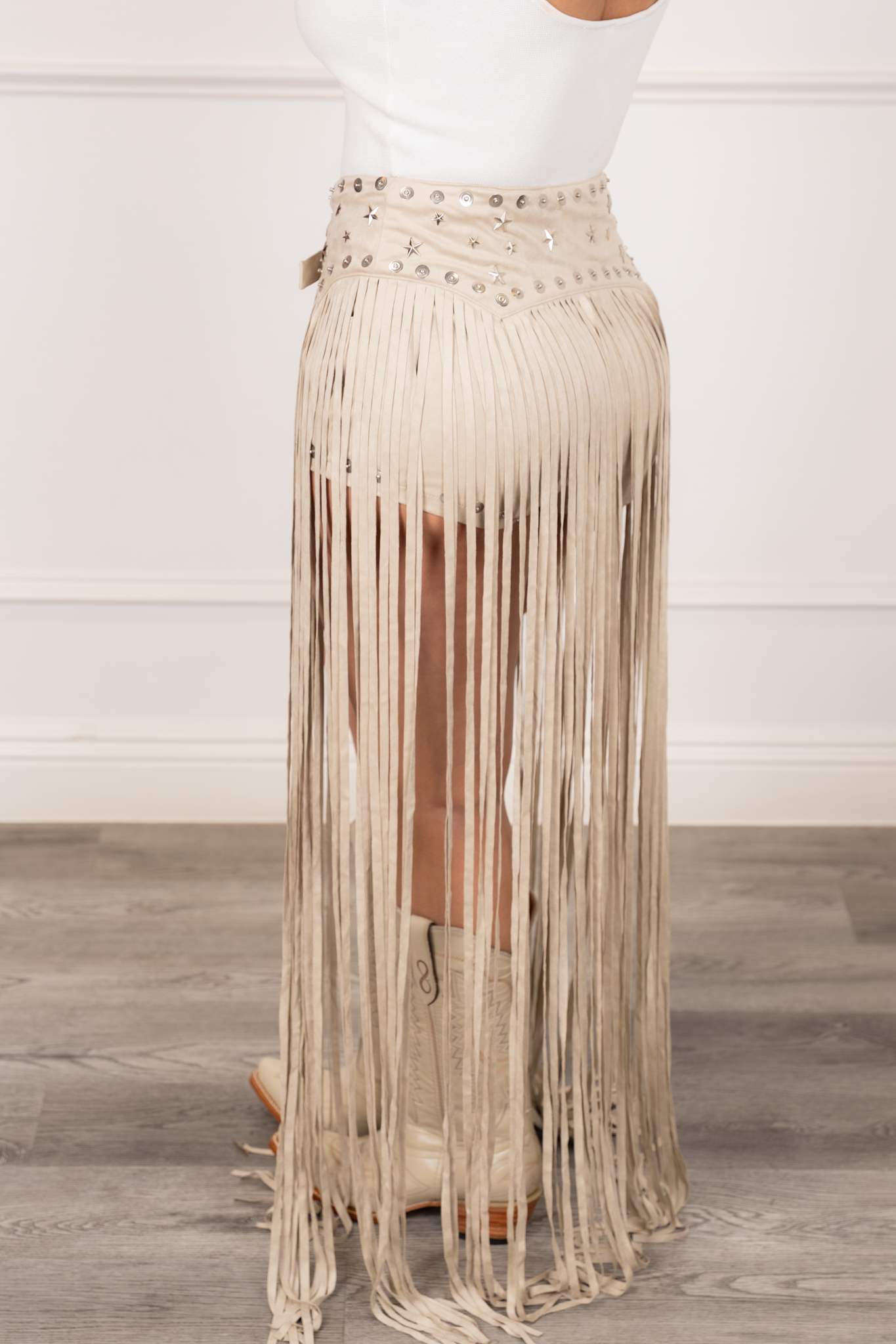 Chic velvet mini shorts featuring side pockets, a side zipper, and an eye-catching wide belt with long fringes that create the illusion of a mini skirt. Soft stretch fabric offers comfort, elegance, and a flattering fit.