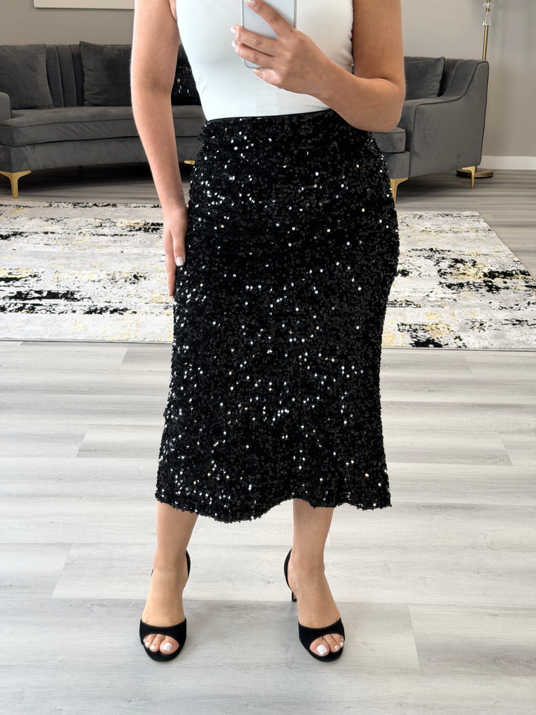 Helenia - Black Cargo-Style Denim Midi Skirt