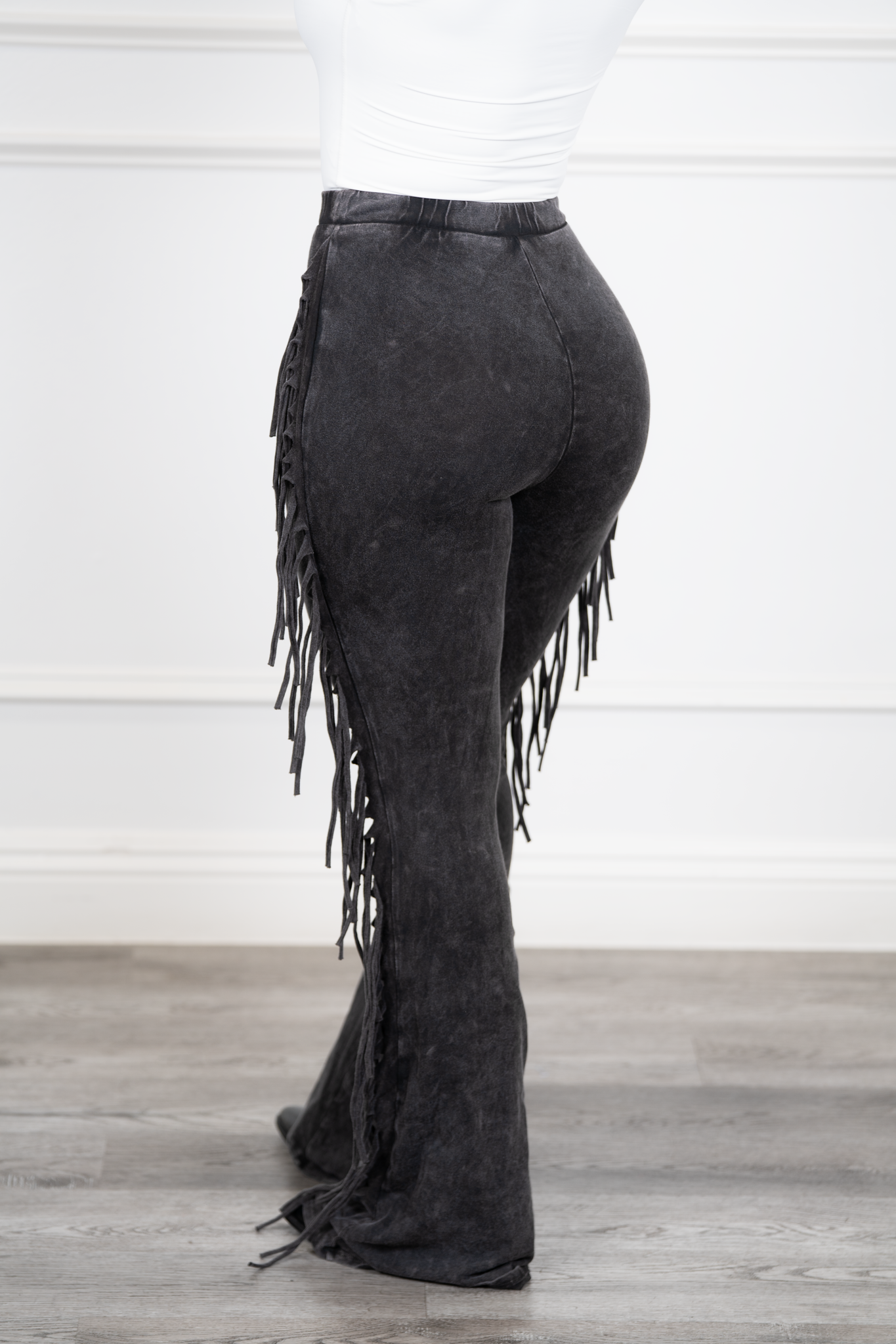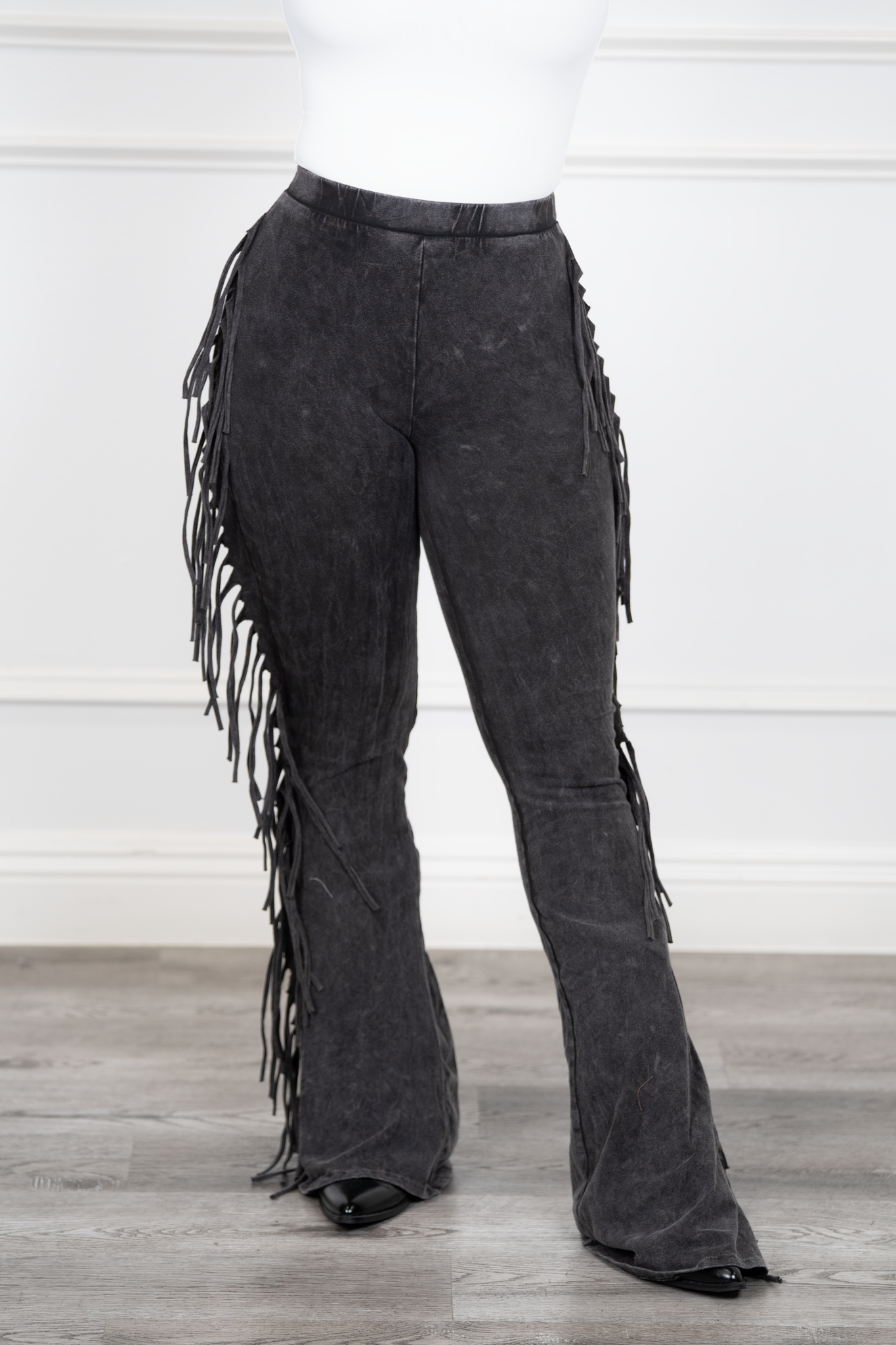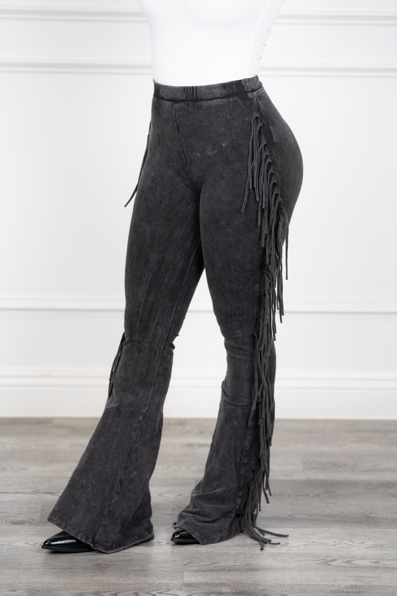 Eleva tu estilo con estos modernos pantalones con detalles de flecos. Con sus exclusivos detalles en flecos, estos pantalones añaden un toque bohemio chic a cualquier conjunto.