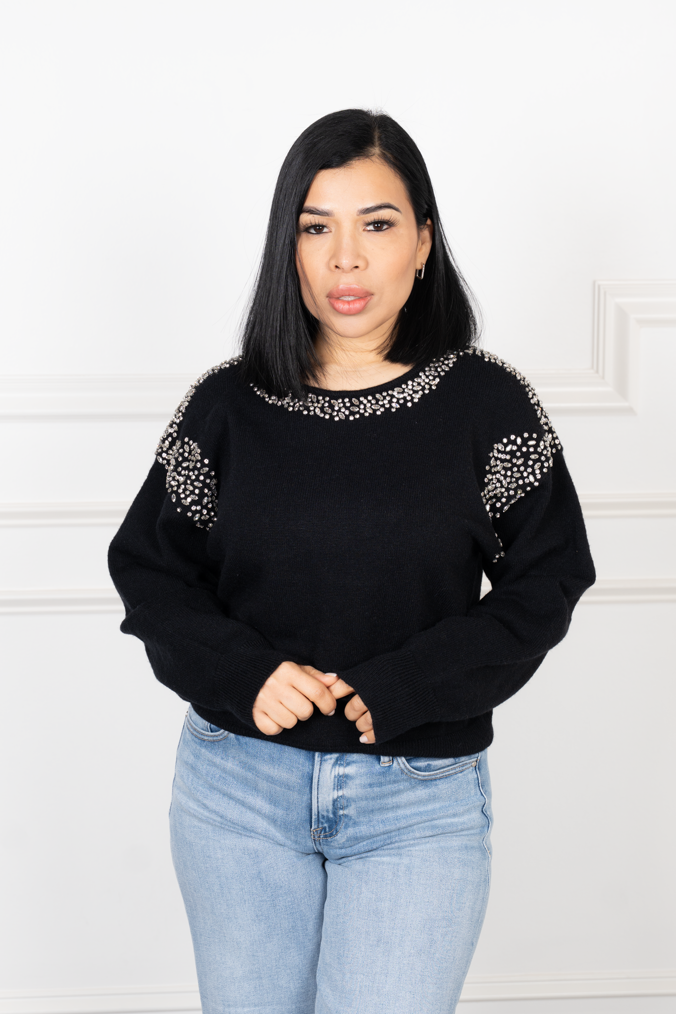 Alexandre-Black Rhinestone Sweater