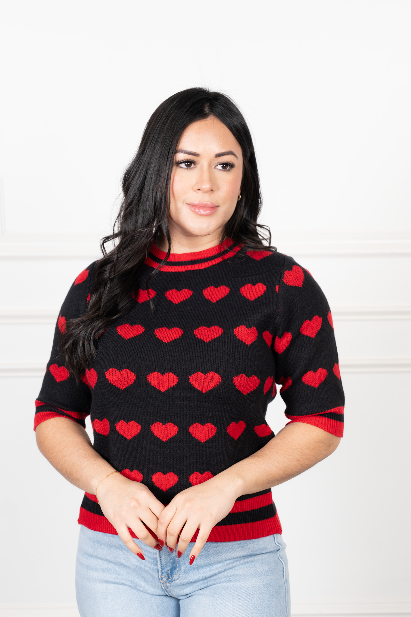 Red & Black Knit Top – Heart Print Cute & Love