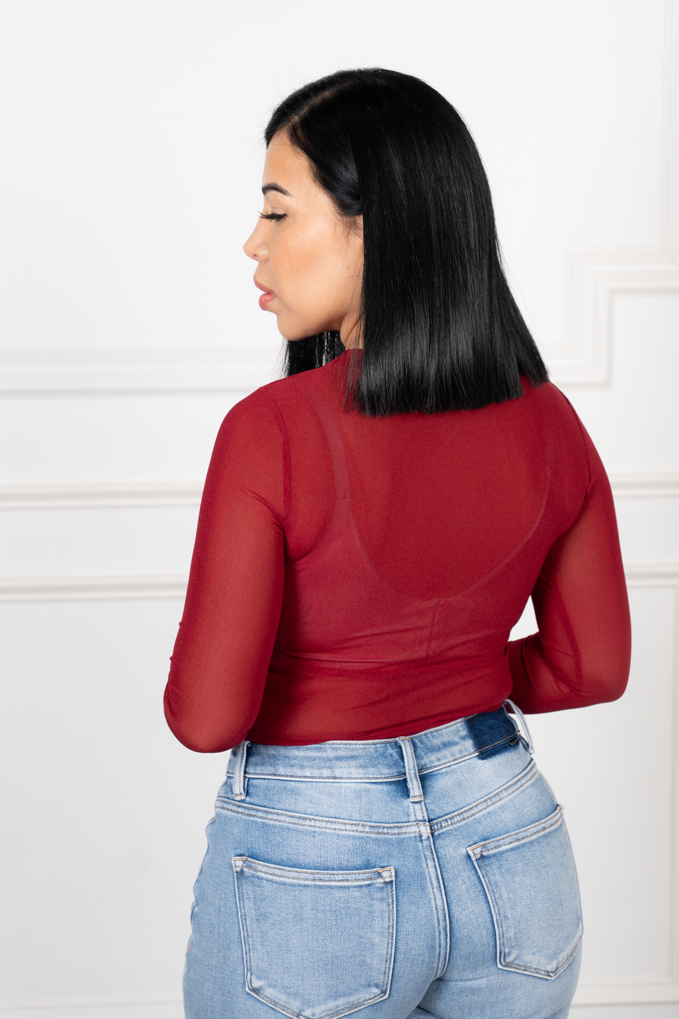Cala - Sheer Burgandy Long Sleeve Top