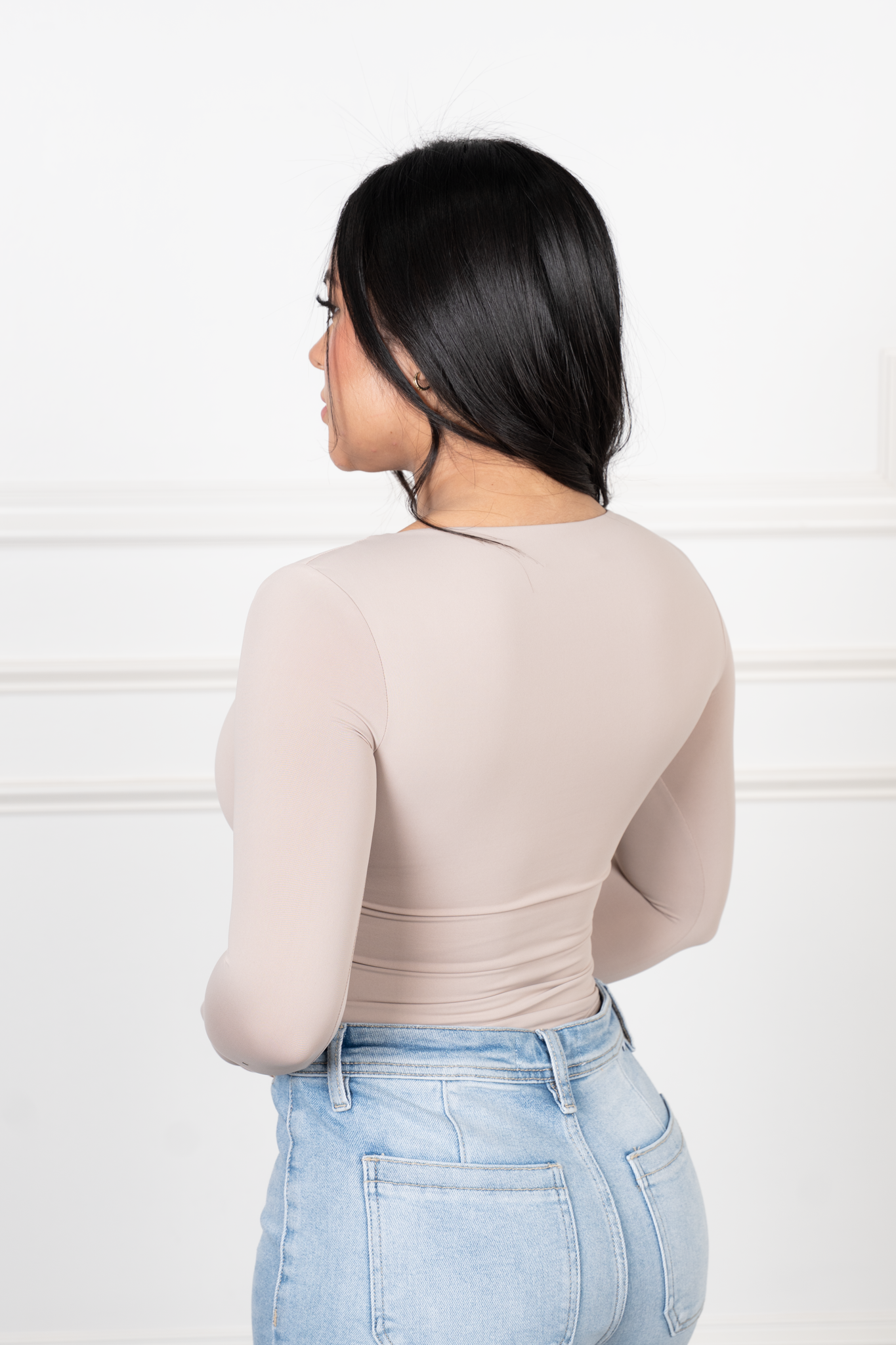 A sleek long-sleeve bodysuit featuring a square neckline and body-hugging silhouette. Crafted in soft stretch fabric, it’s a versatile essential for layering or wearing solo with chic confidence.