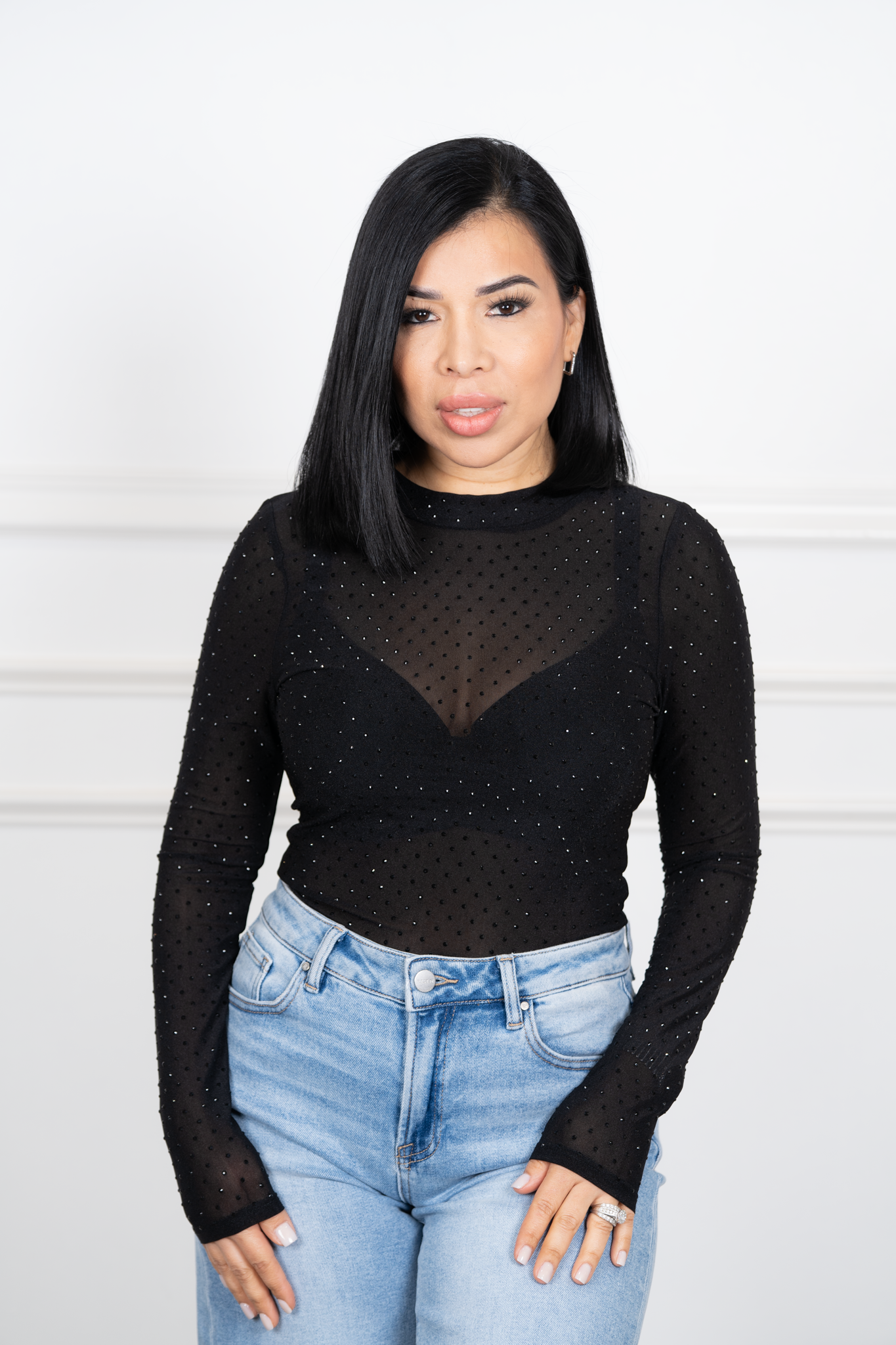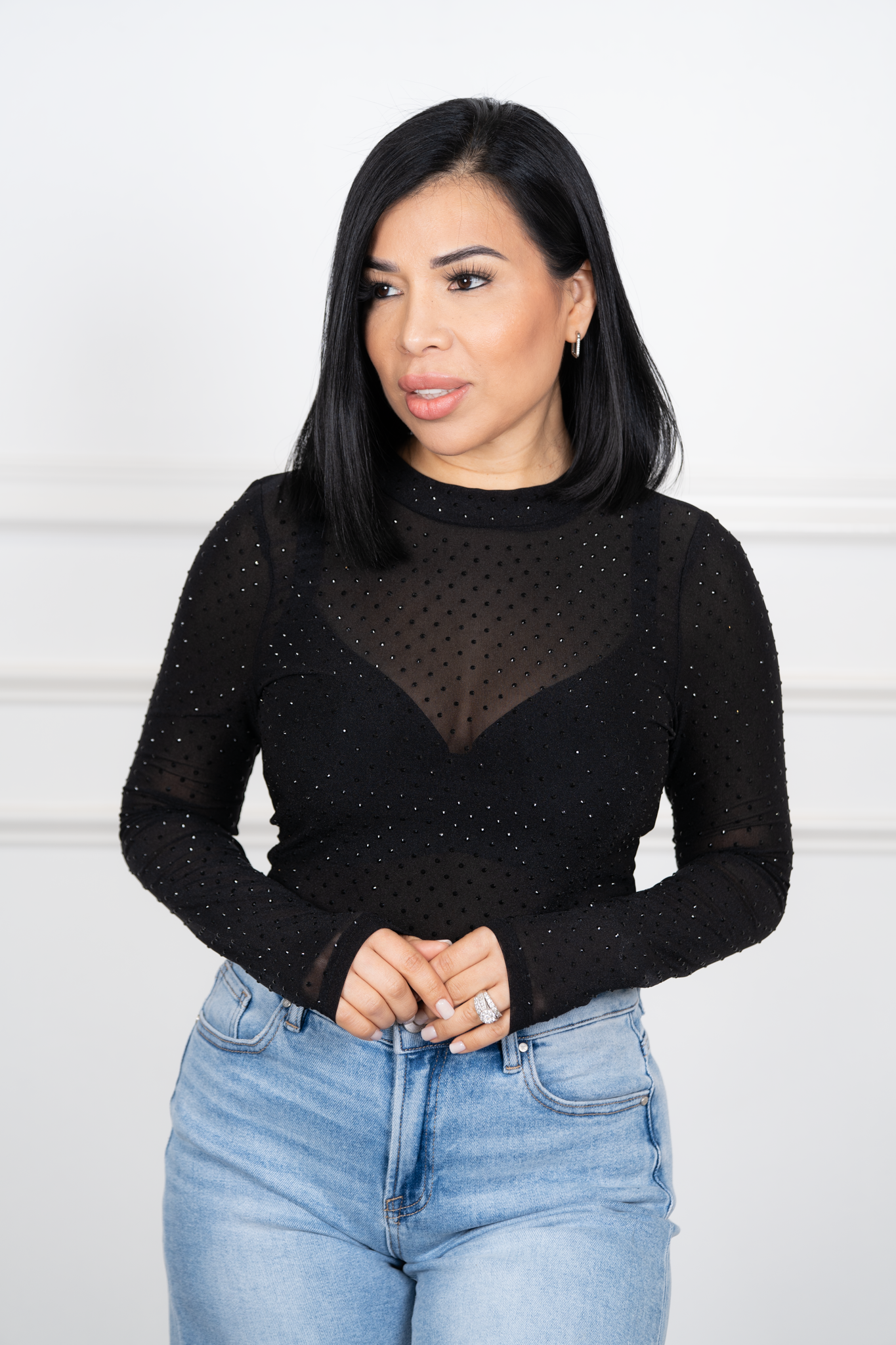 Mimi-Black See-through With Rhinestone Top