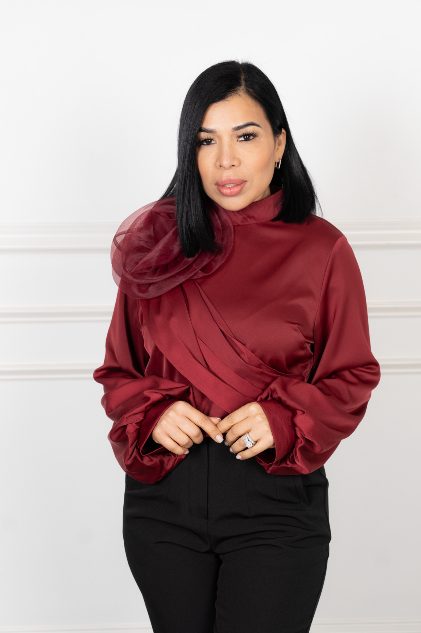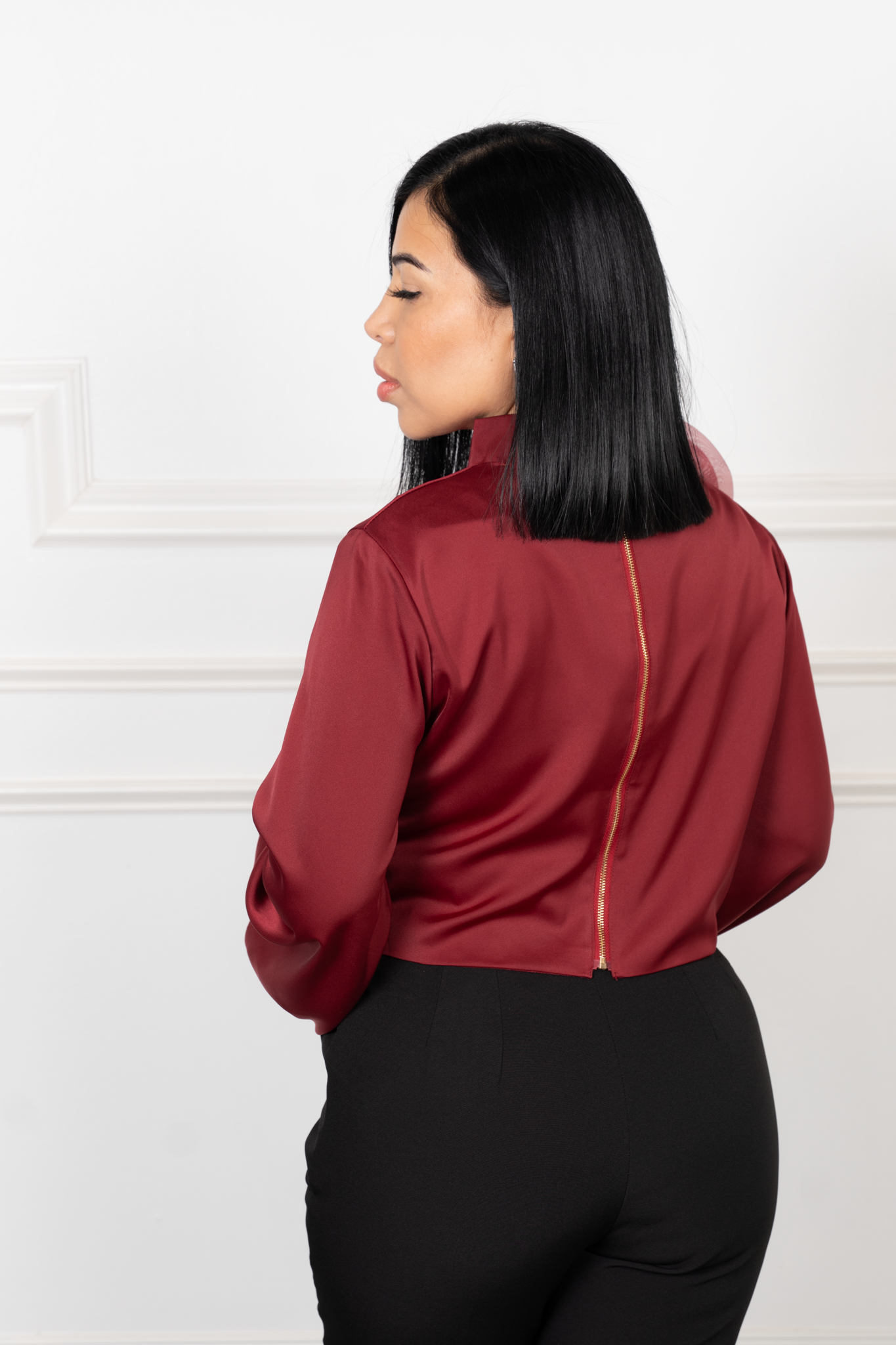 Valentina-Burgandy long Sleeve Blouse