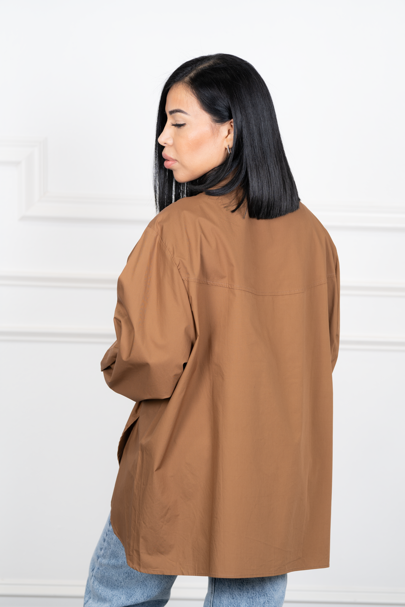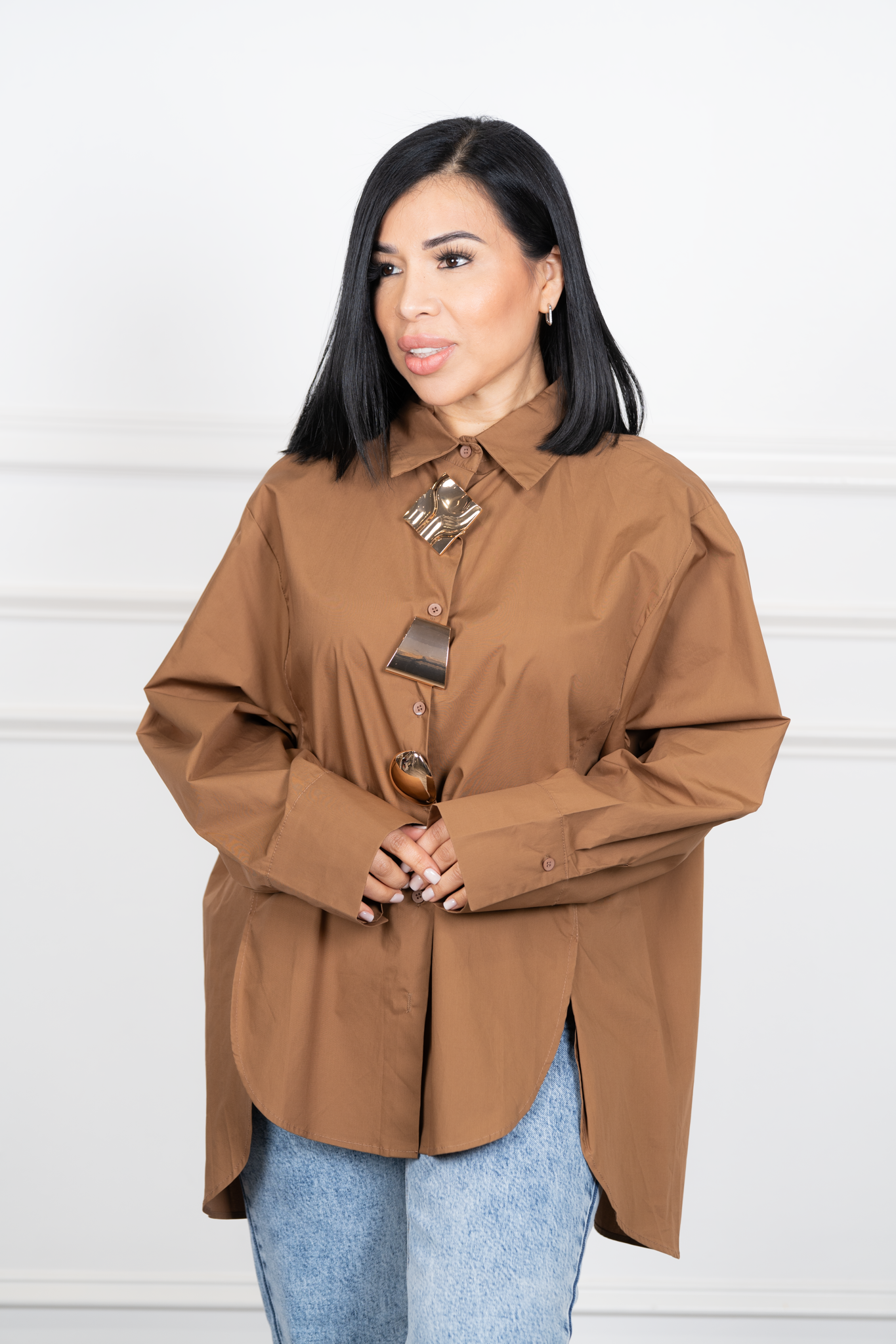 Venus-Mocha Oversized Shirt With Sculptural Gold Botton