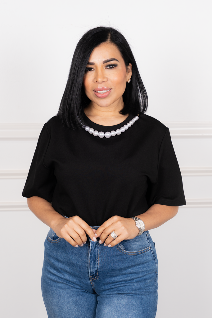 Antonella - Brown Oversized Pearl-Detail Blouse