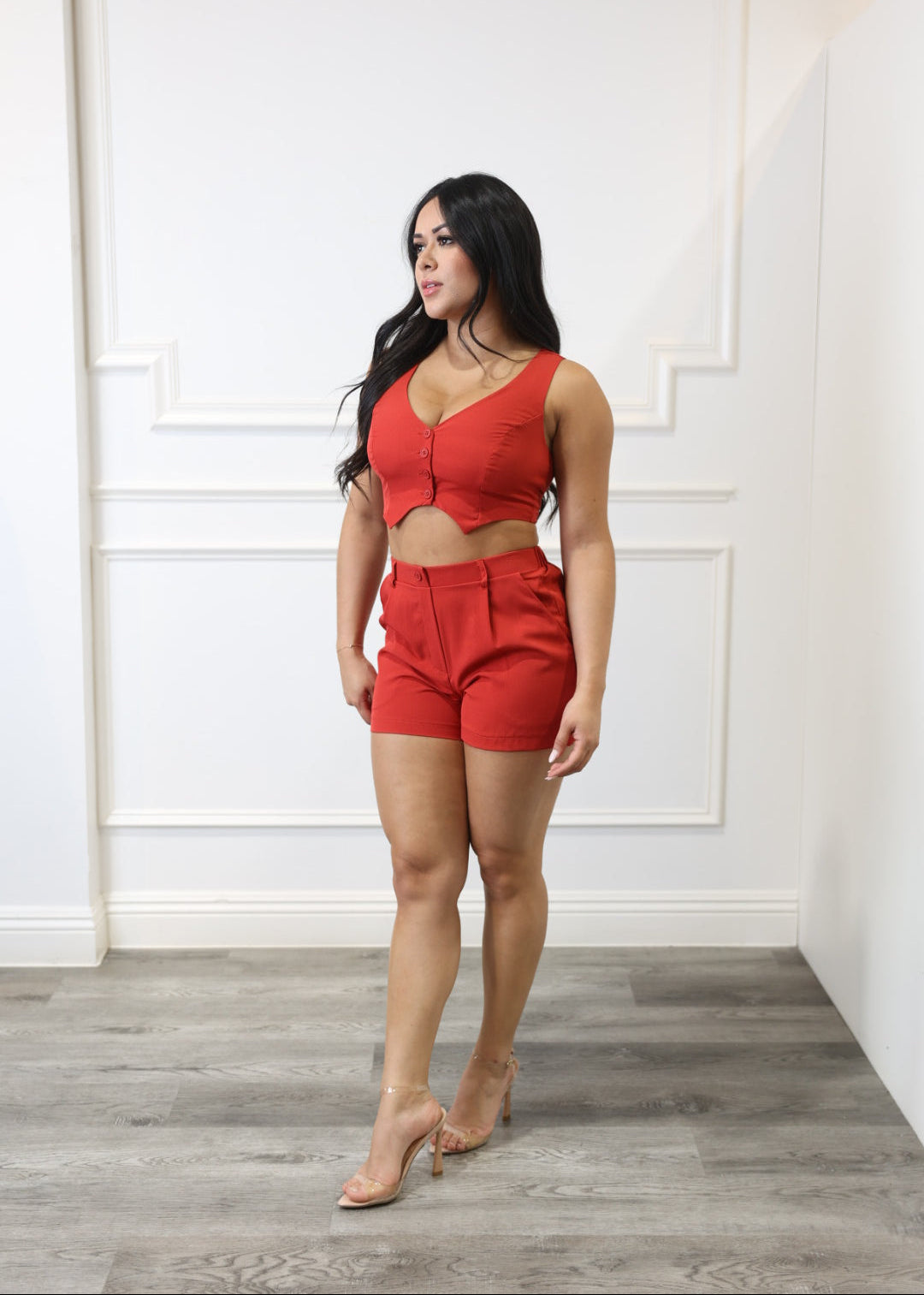 Adriana - Red Blazer Top & Dress Shorts Set