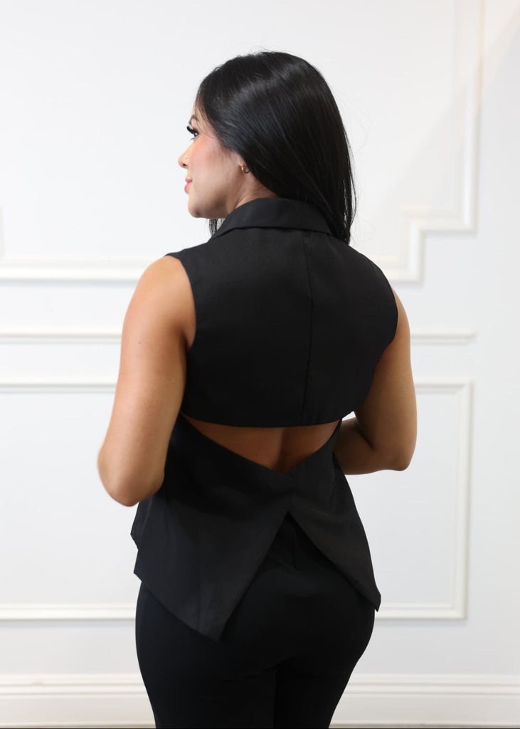 Alina - Black Tailored Blazer Top