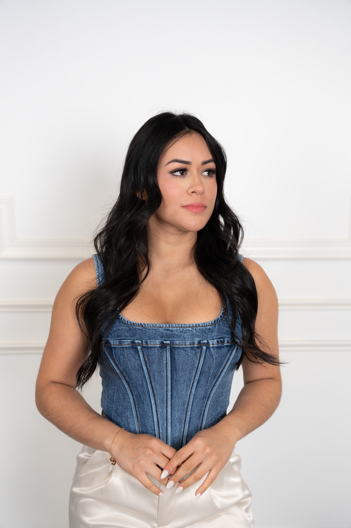 Dark Blue Denim Square Neck Corset Top – Structured & Chic