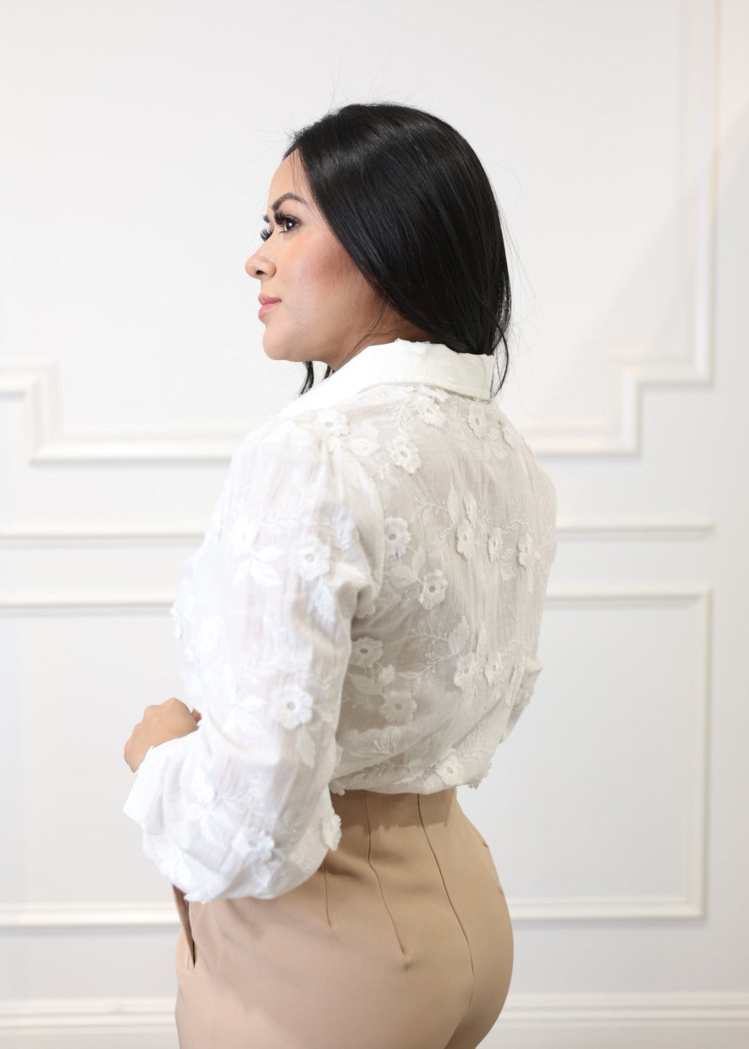 Long-Sleeve Floral Embroidered Blouse – Romantic & Refined
