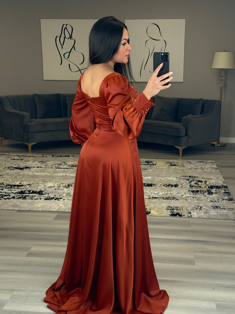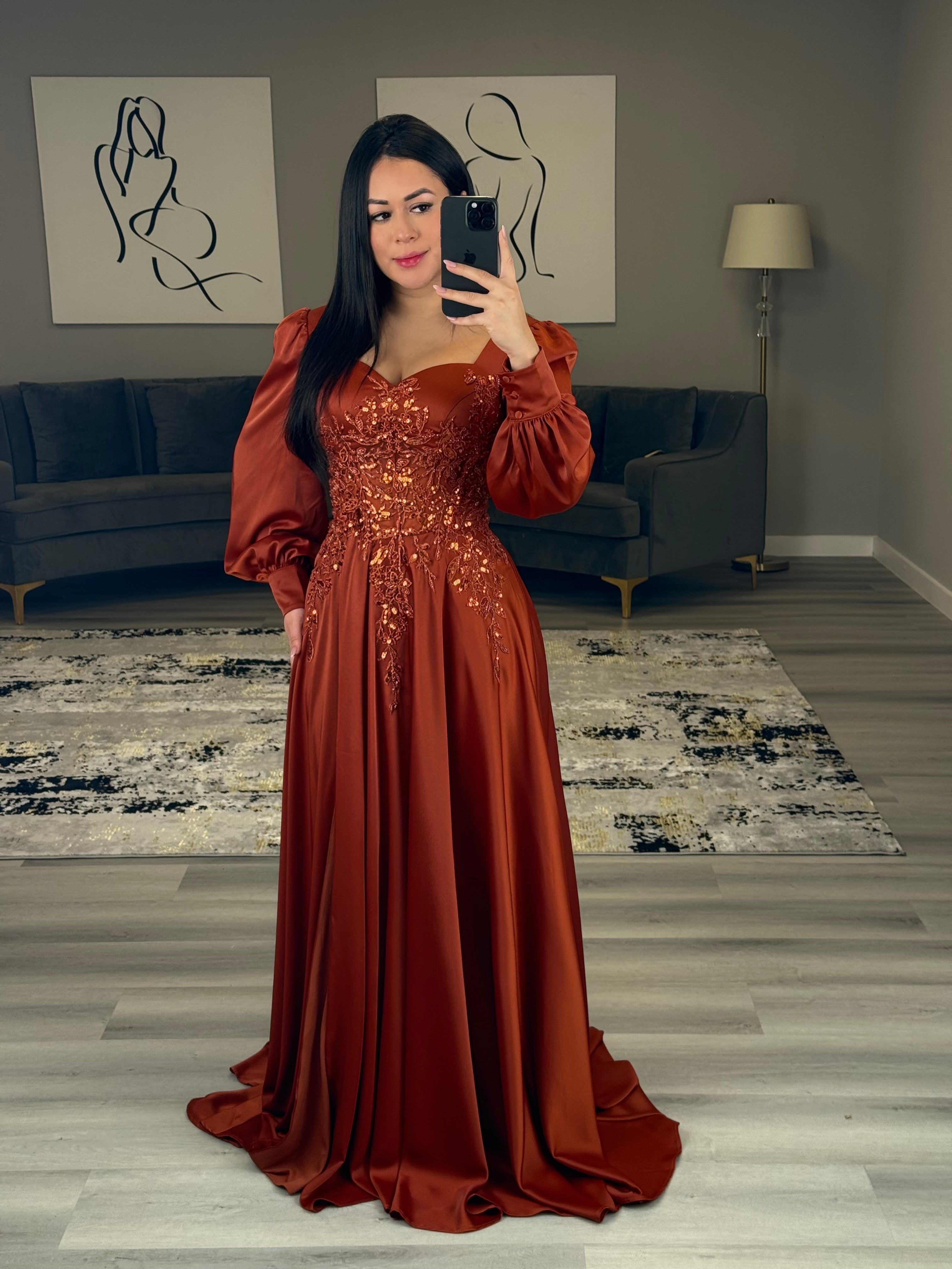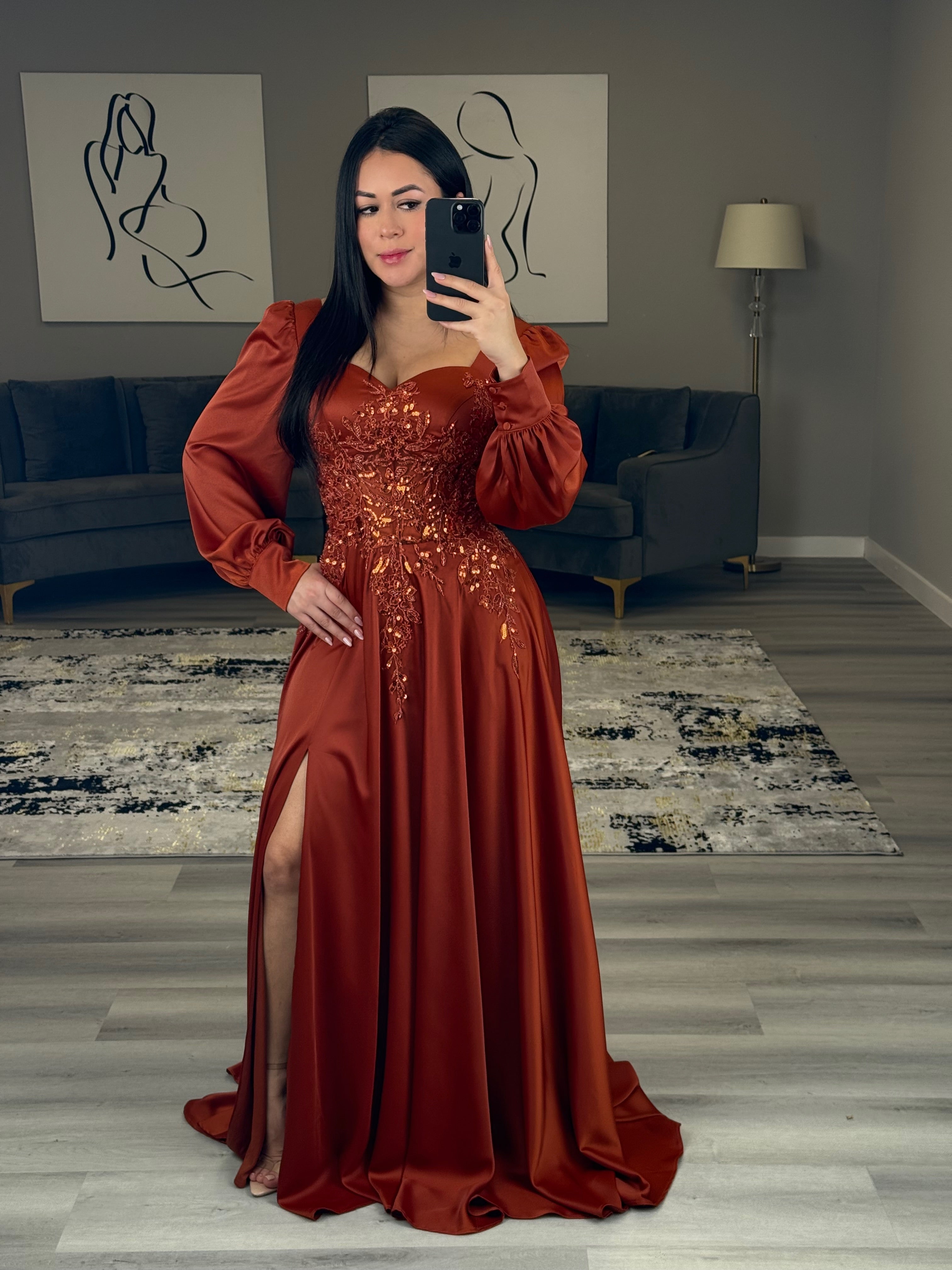 Emilia-Rust Long Sleeve Maxi Dress - Rust / S is backordered and will ship as soon as it is back in stock.