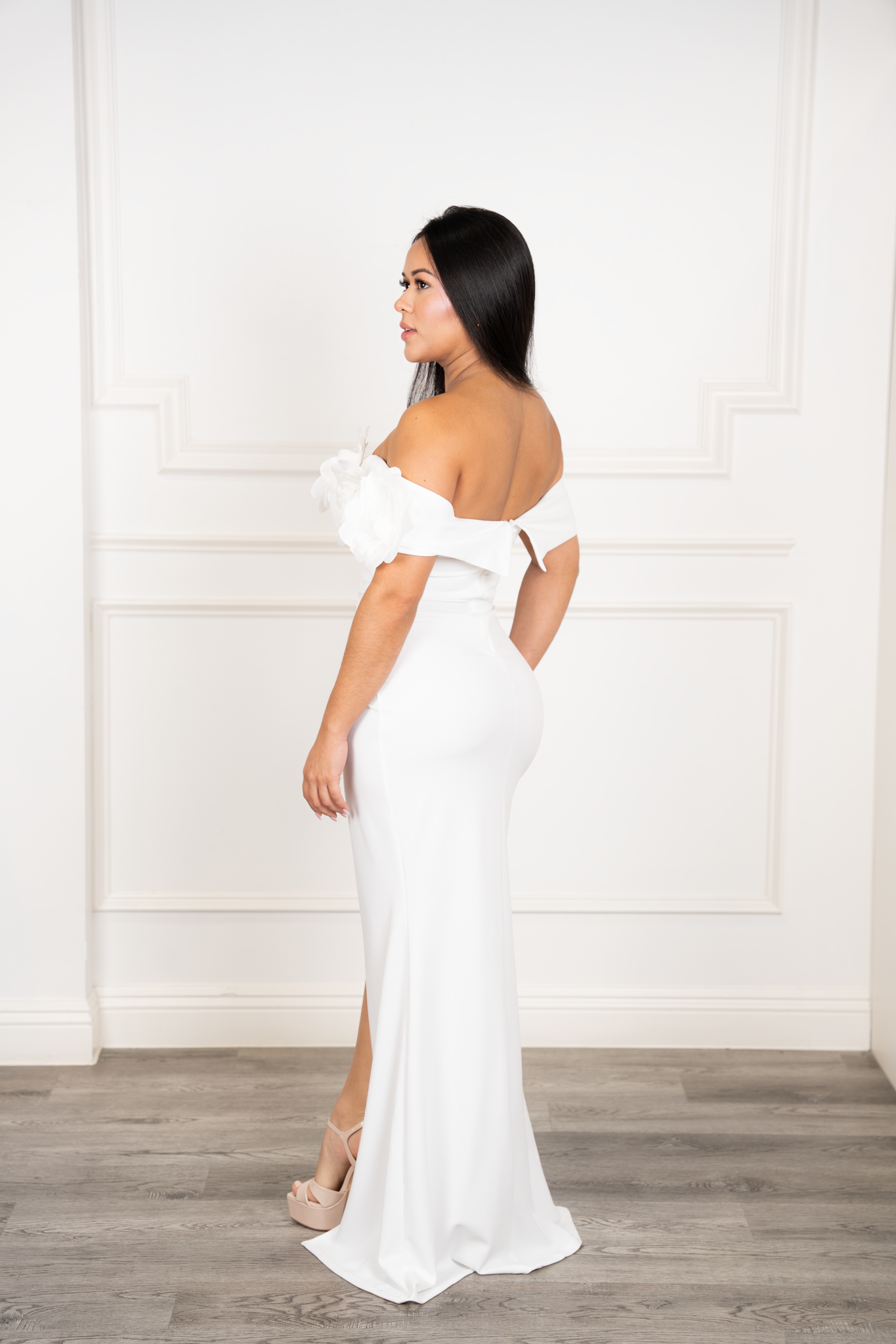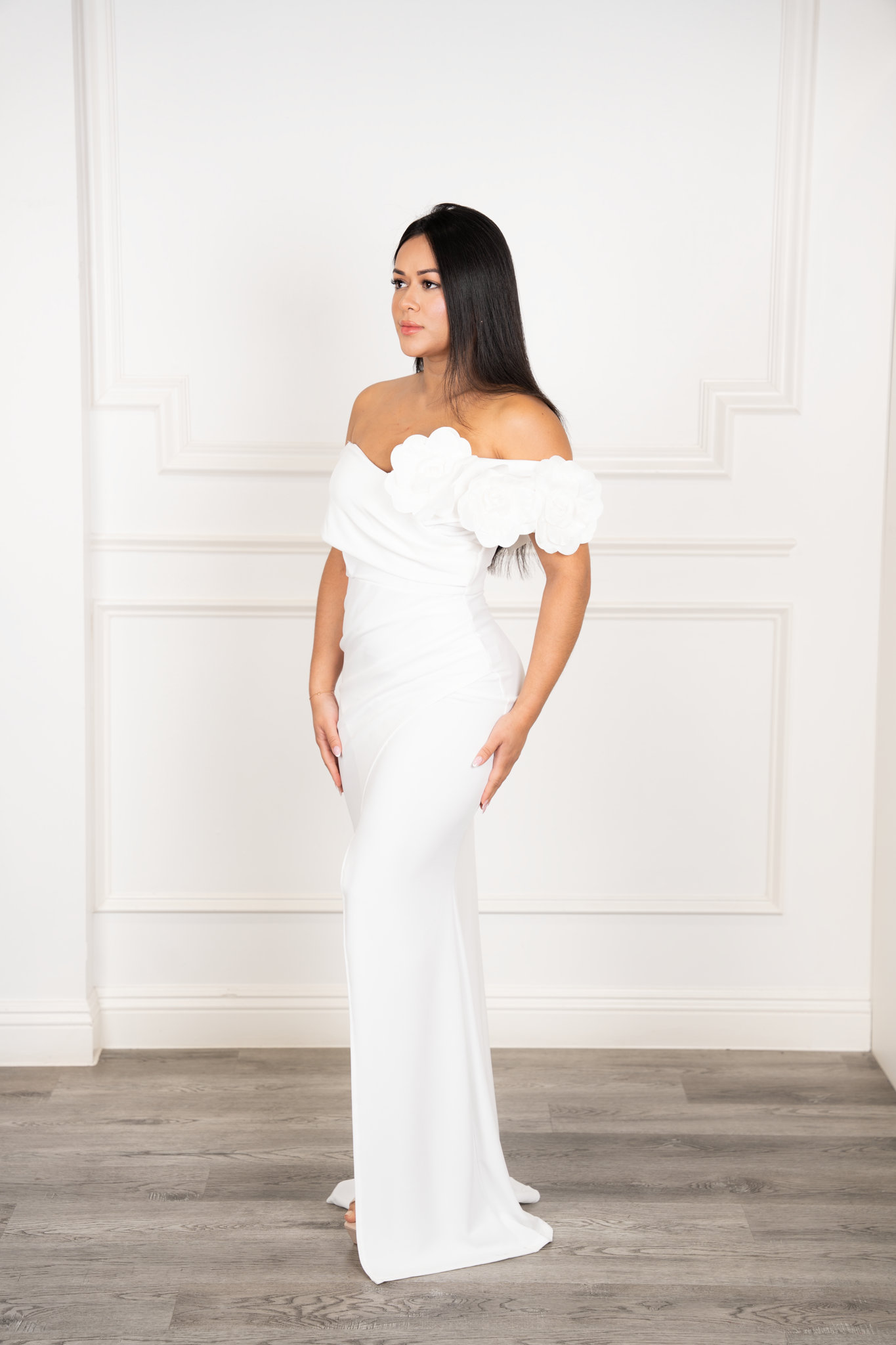 Ivanna - White Off-Shoulder 3D Flower Dress